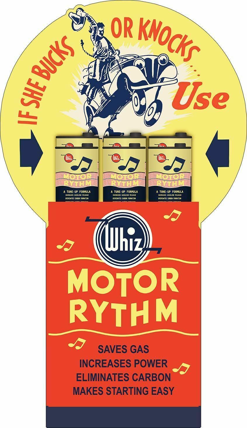 Whiz Motor Rythm Oil Plasma Cut Metal Sign, Vintage Automotive Gas Advertisement