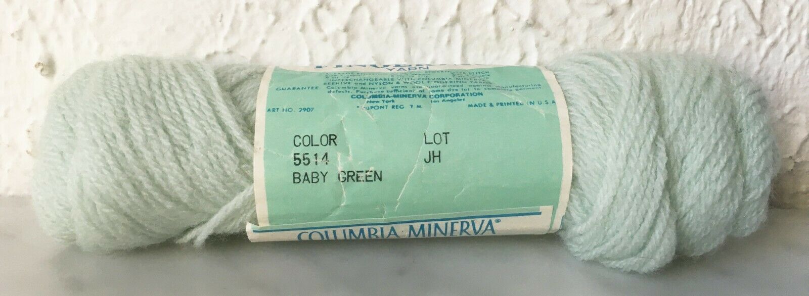 One skein vintage Columbia-Minerva Nantuk Fingering yarn. Color Baby Green #5514. 100% Orlon Acrylic. Made in USA.