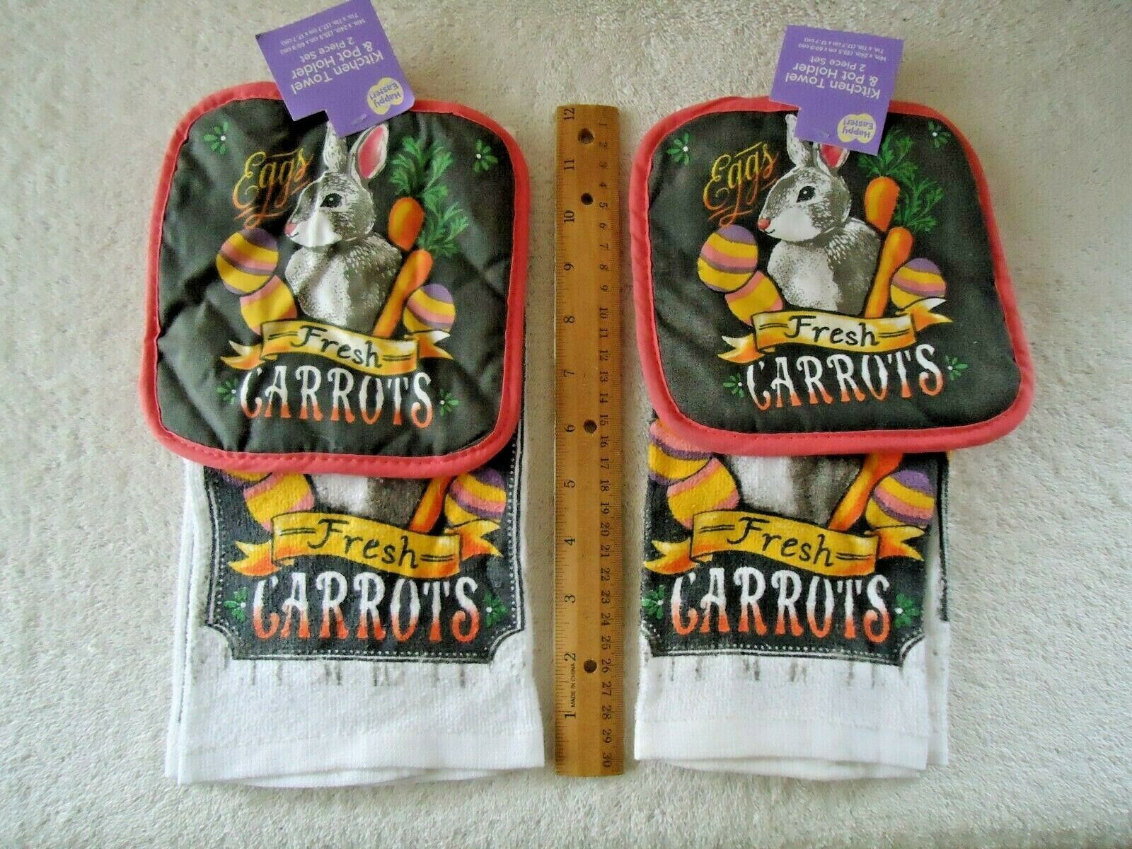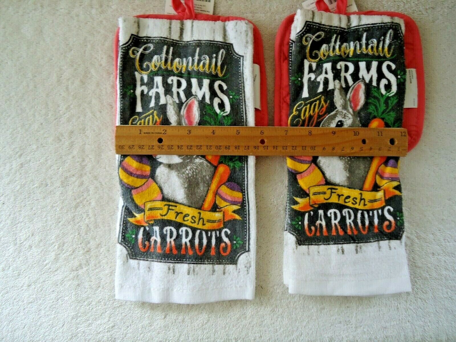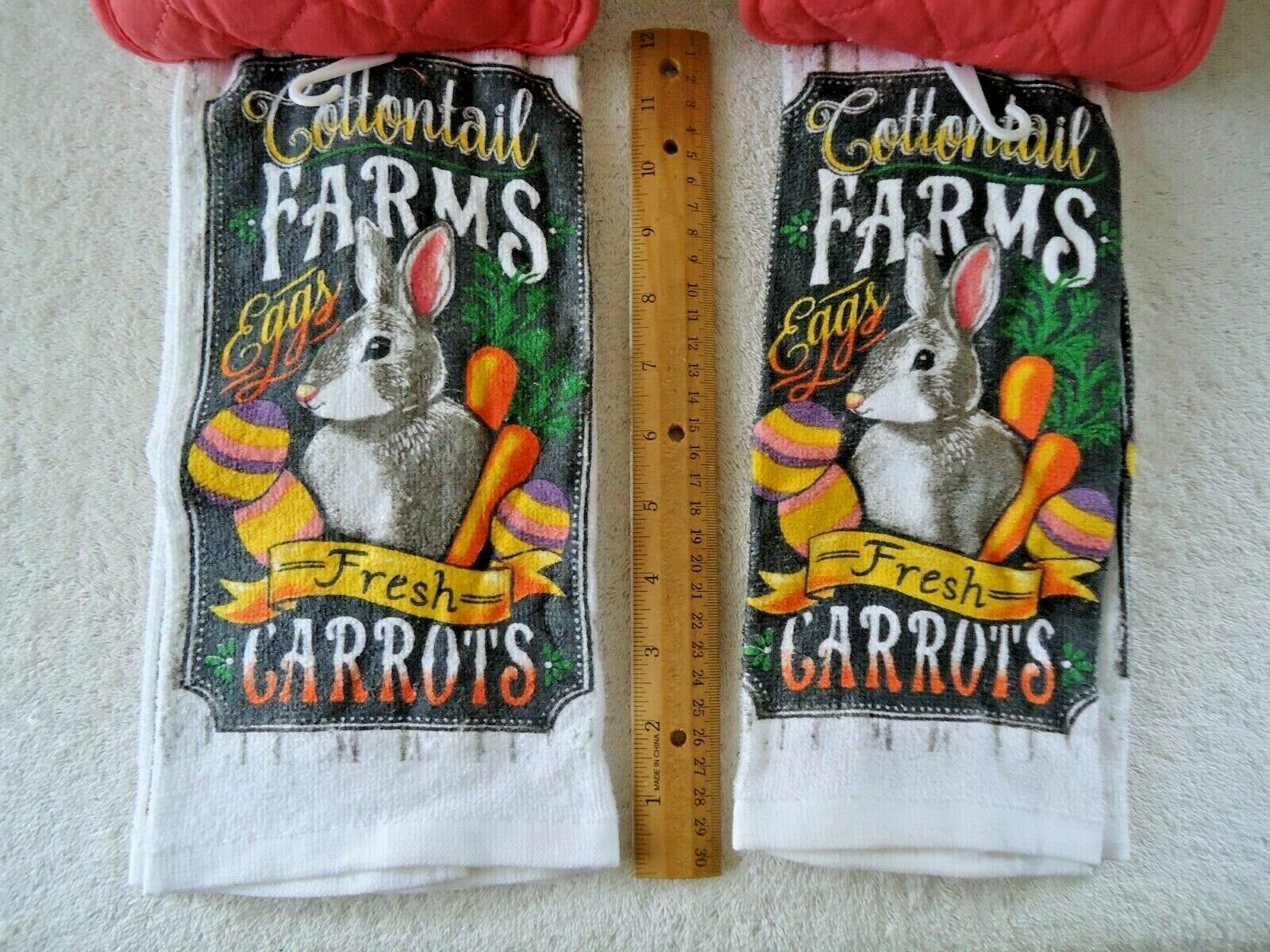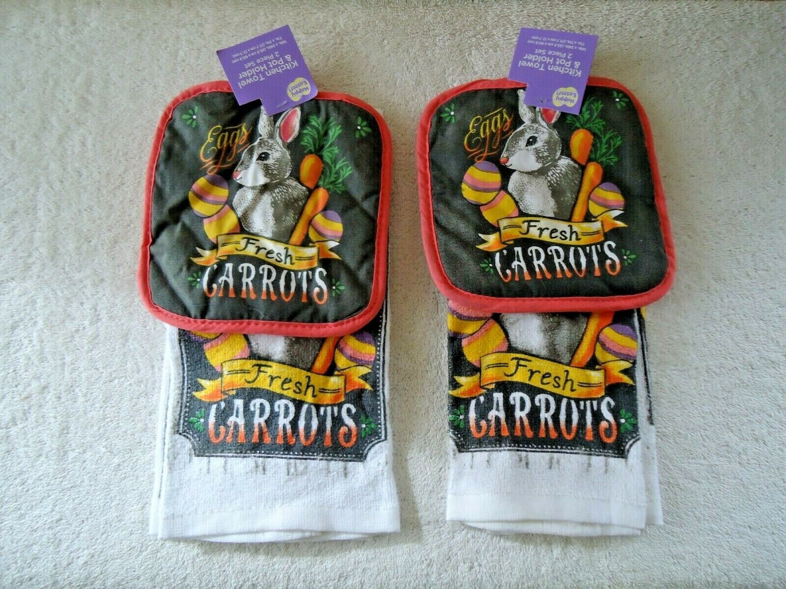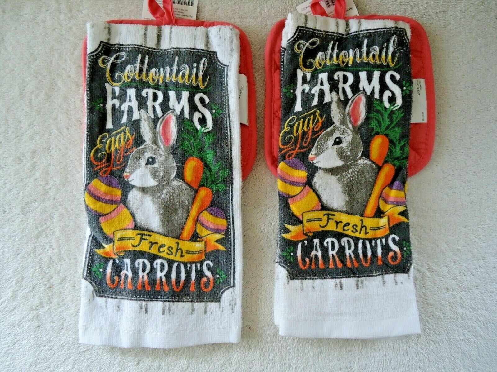 Lot Of 2 " NWTS " Cottontail Farms Bunny 2 Piece Kitchen Towel & Pot Holder Sets