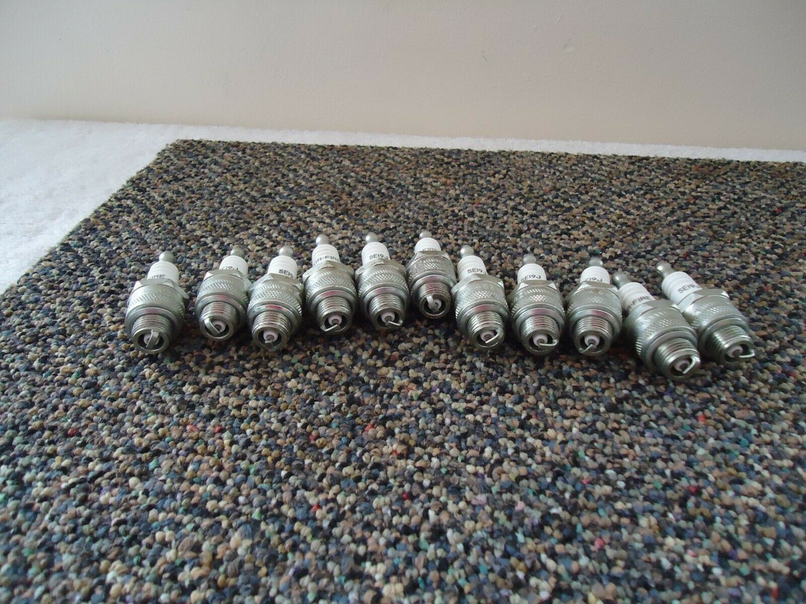Here is a " NOS " Lot Of 11 Mega Fire SE19J Spark Plugs " GREAT ITEMS ".This is a must for anyone who uses this type or a shop for stock, collector,or decorator wanting that vintage retro look.If you have any concerns or questions about this item(s) please ask before bidding / purchasing because this item(s) is being SOLD AS IS.Thank You.-(BLS3-5)