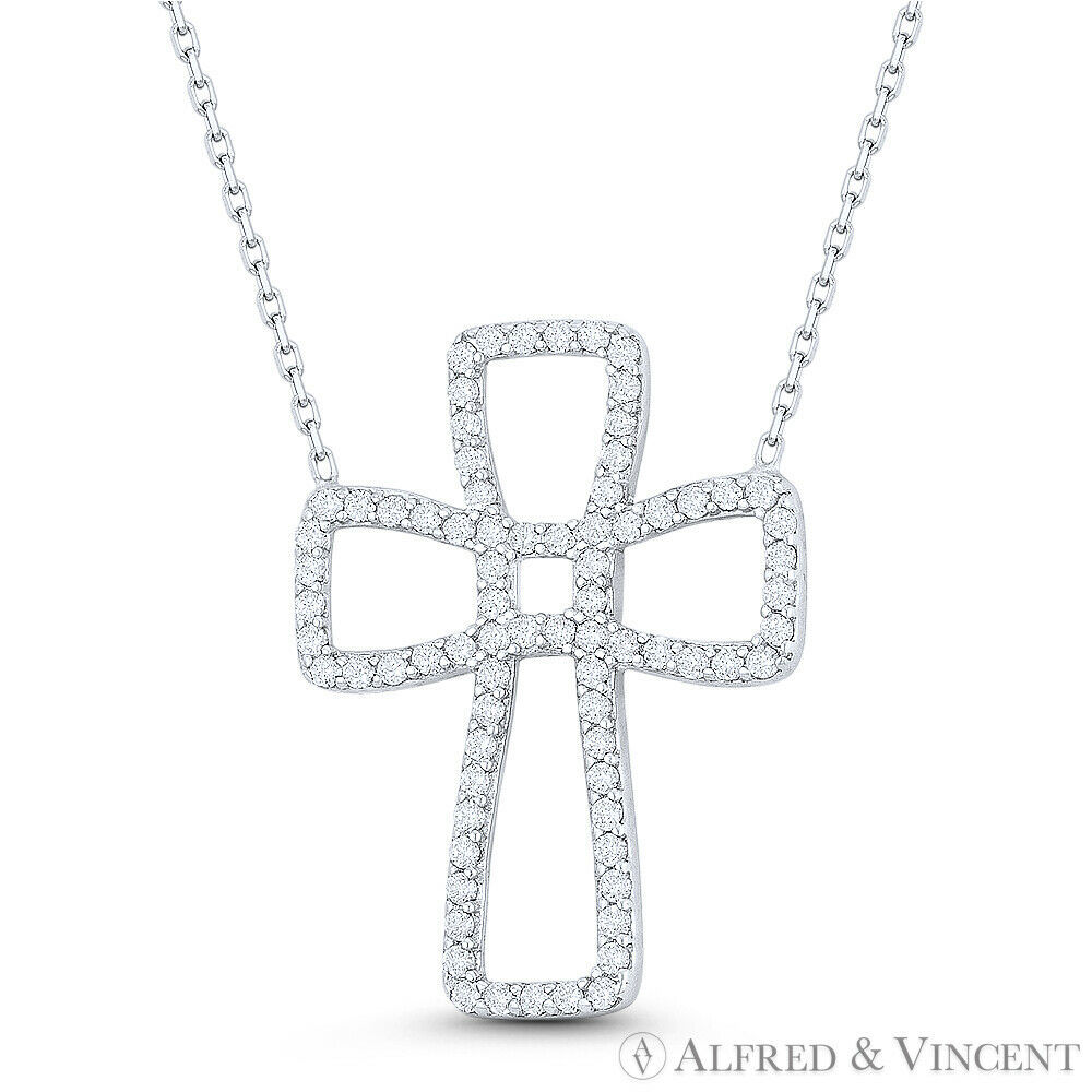 Cross Pattée / Formée CZ Crystal .925 Sterling Silver Christian Pendant Necklace
