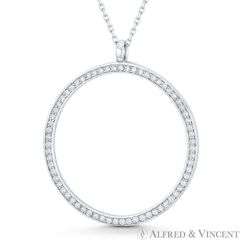Multi-Bezel Eternity Circle Cubic Zirconia CZ Crystal Pendant Chain Necklace in .925 Sterling Silver