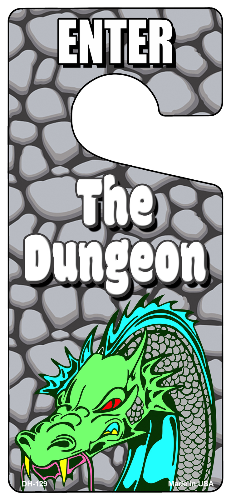 The Dungeon Novelty Metal Door Hanger. 4" x 9" high gloss metal door hanger. Made of the highest quality aluminum for a weather resistant finish. It is lightweight and durable. Pre-cut hole fits most doorknobs. Individually shrink-wrapped and proudly made in the USA.