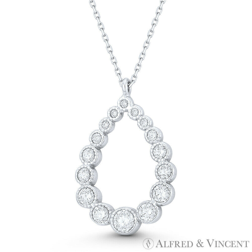 Teardrop Cubic Zirconia CZ Crystal Multi-Bezel Pendant Chain Necklace in .925 Sterling Silver