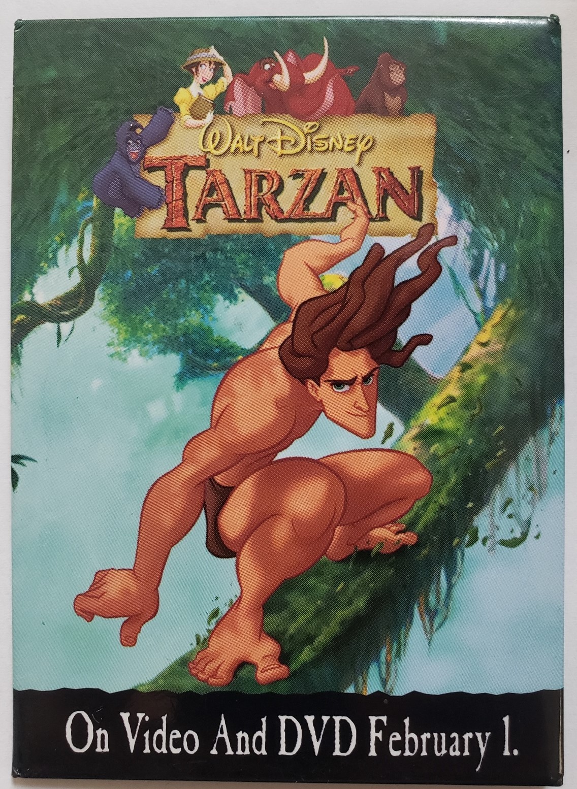 Vintage Walt Disney's Tarzan on Video and DVD February 1 Promo Pinback in great condition.