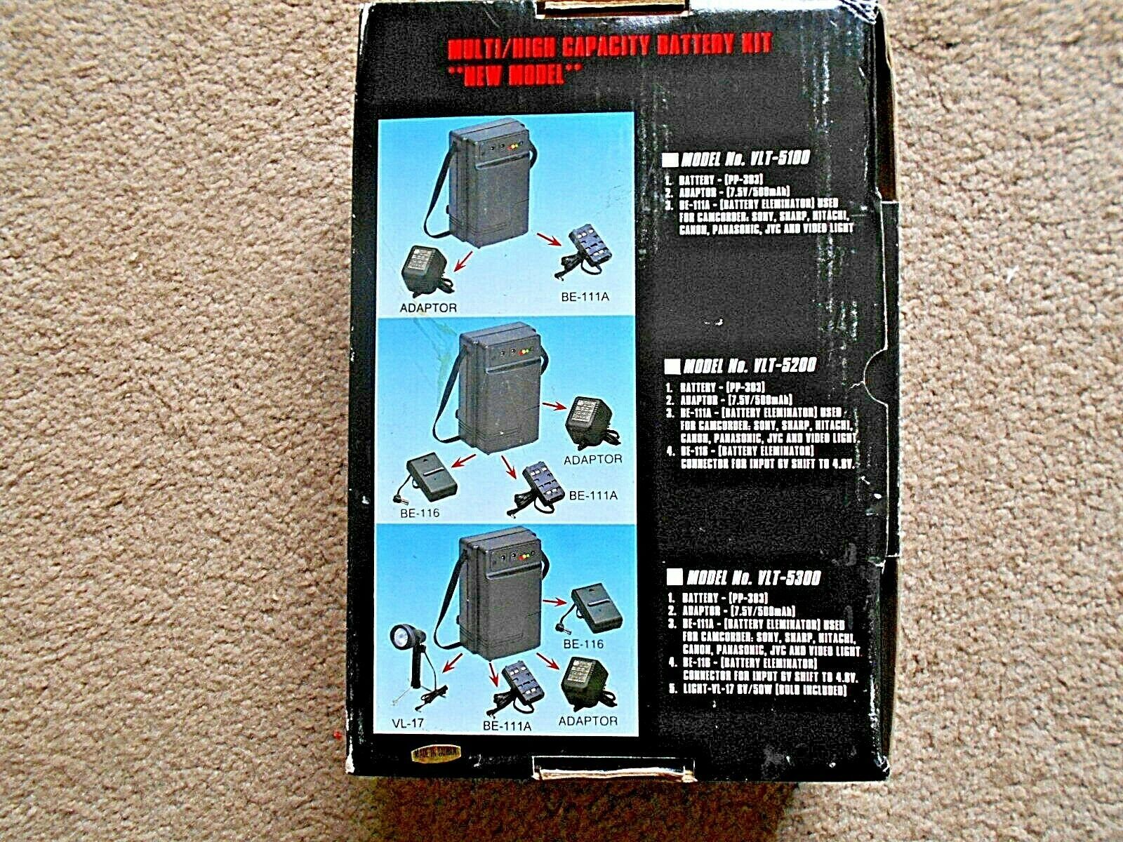 Multi/High Capacity Battery Kit Model No VLT-5100 for Camcorder, Sony, Sharp, Canon, Hitachi, Panasonic, JVC and Video Light