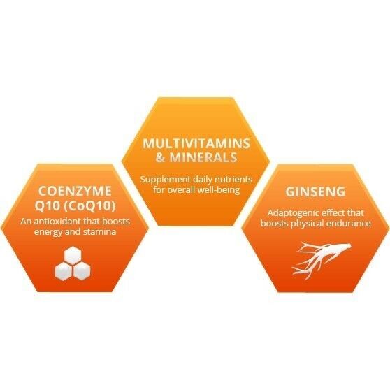 Gingseng, COQ-10, Vitamin B1 (Thiamine), Vitamin B12, Vitamin B6 |