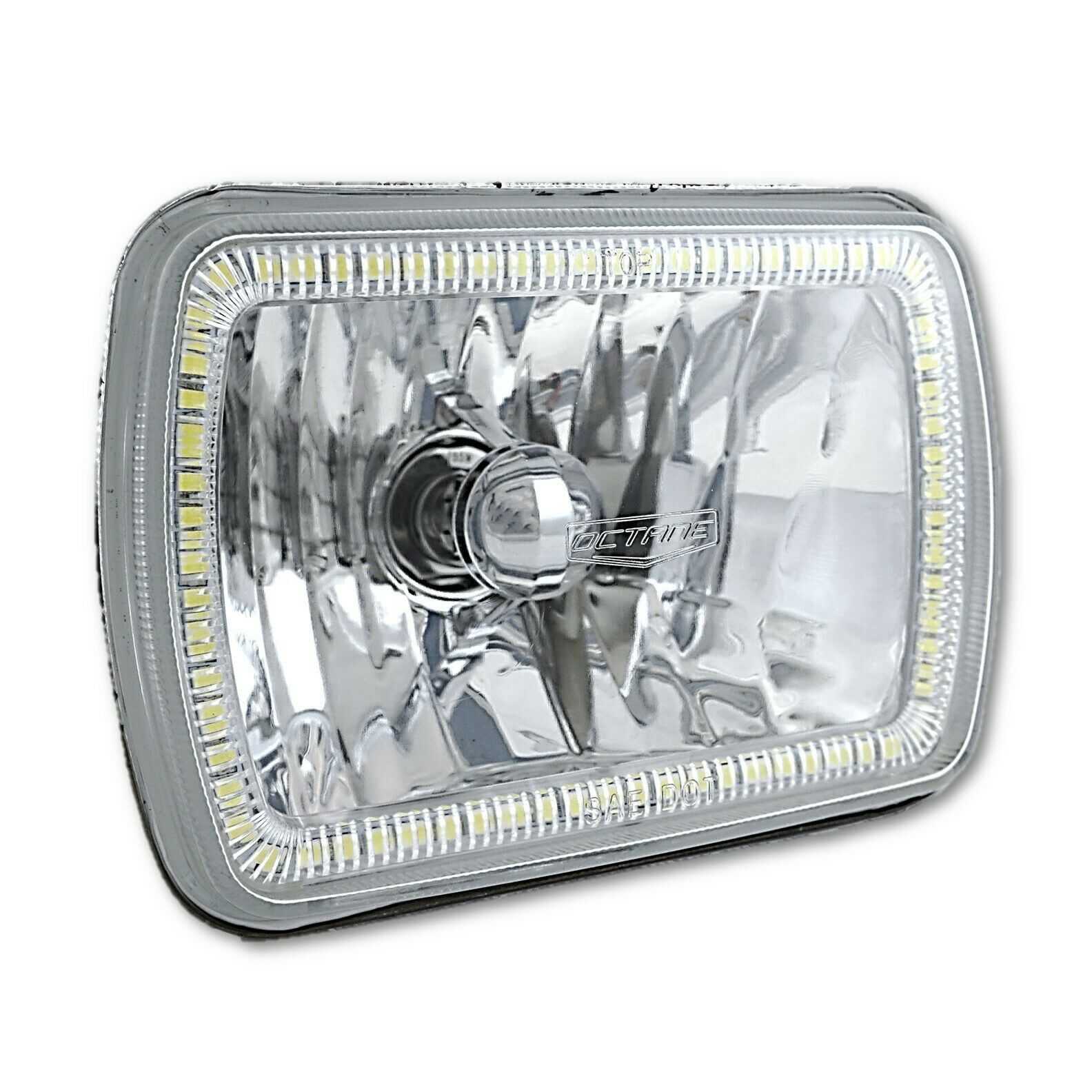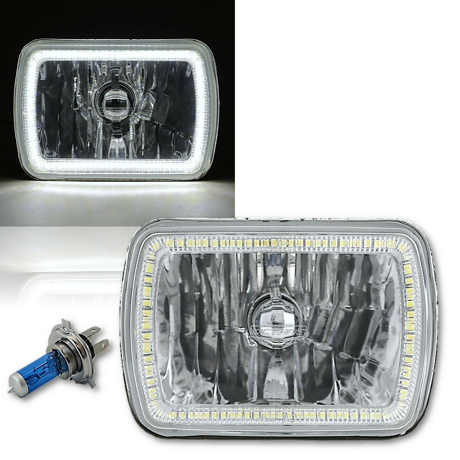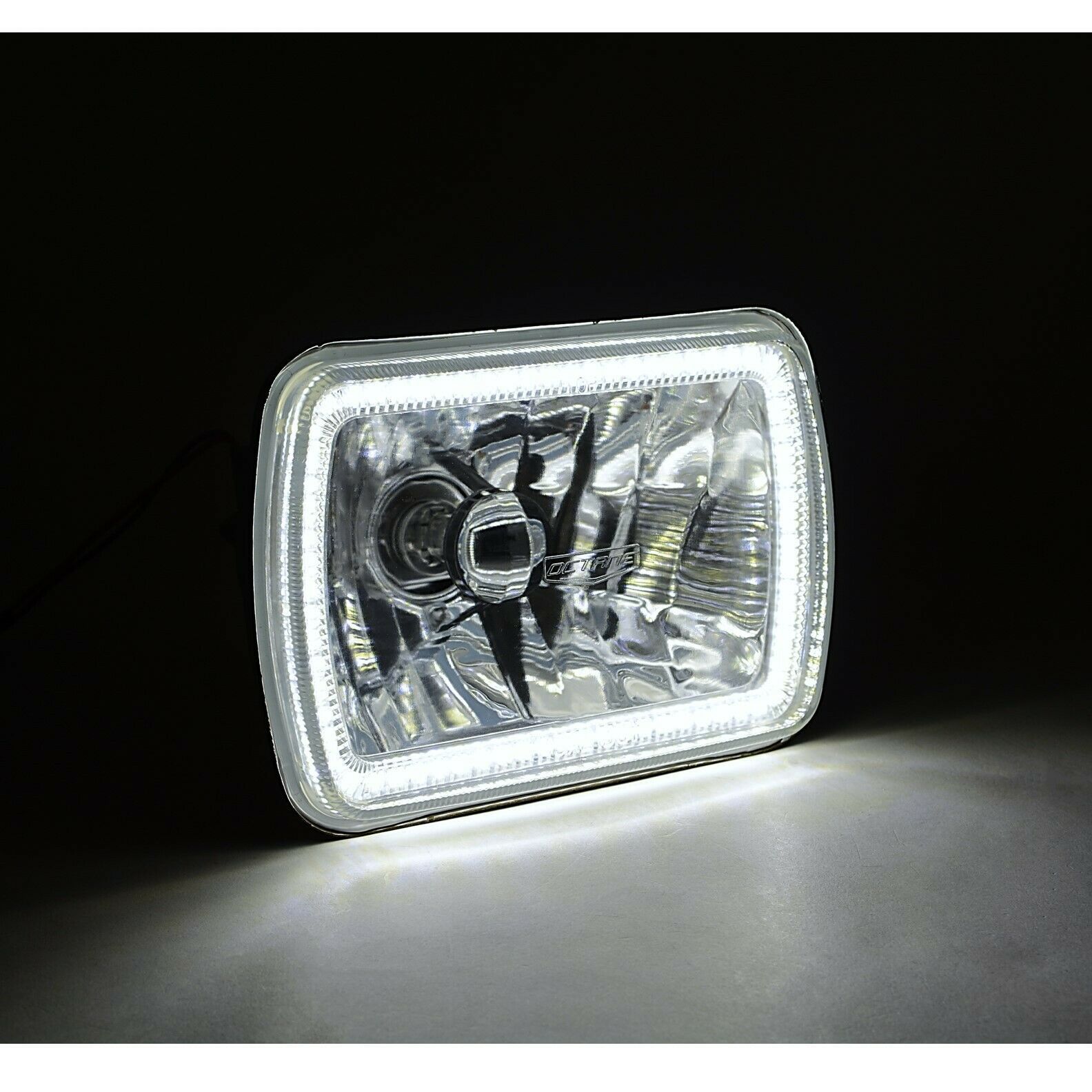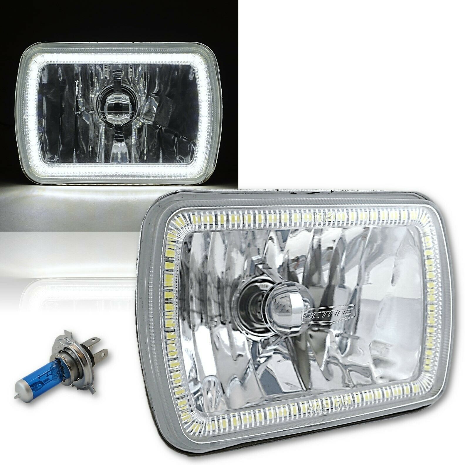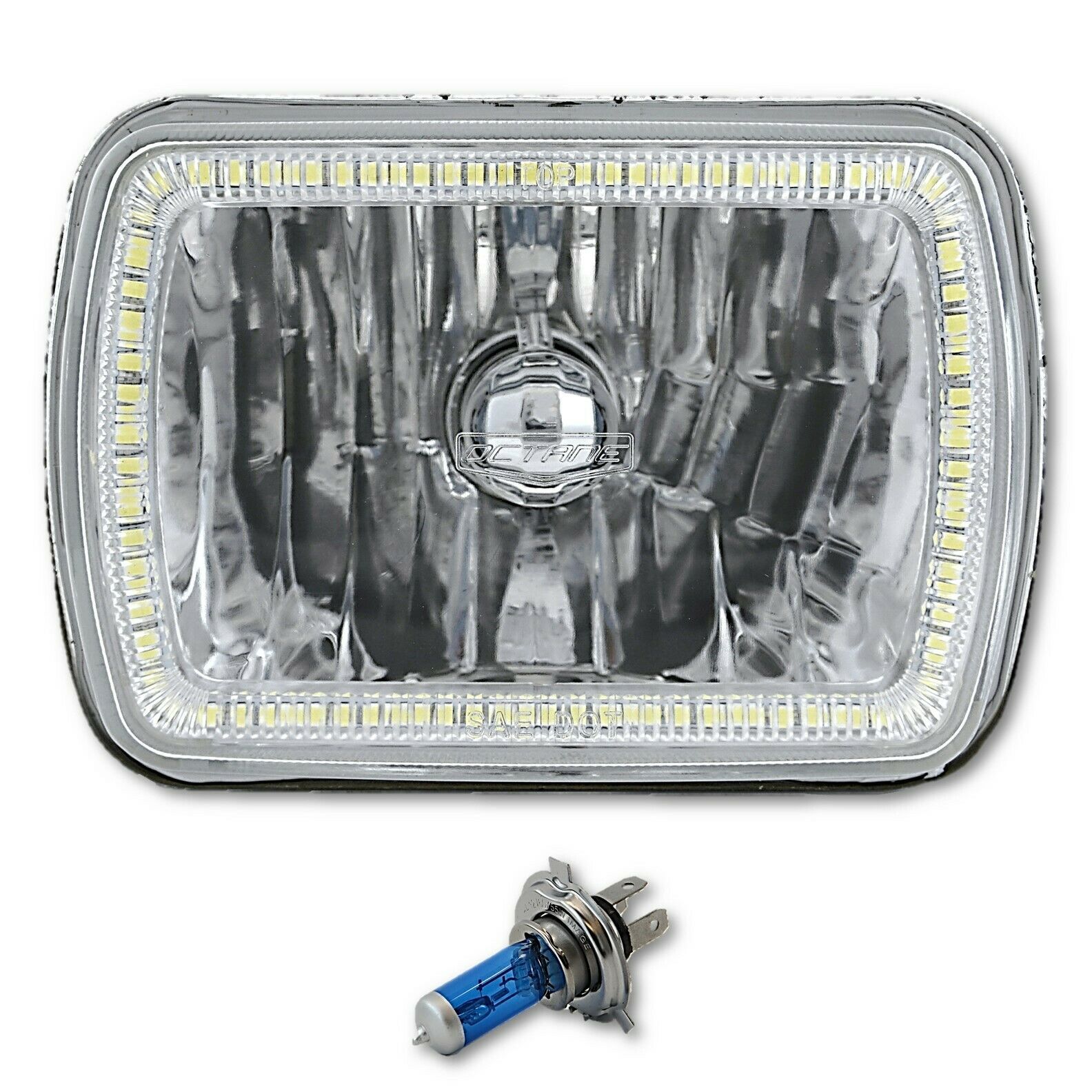 SINGLE - NEW 7x6" INCH RECTANGULAR WHITE SMD LED HALO CRYSTAL CLEAR GLASS LENS HEADLAMP