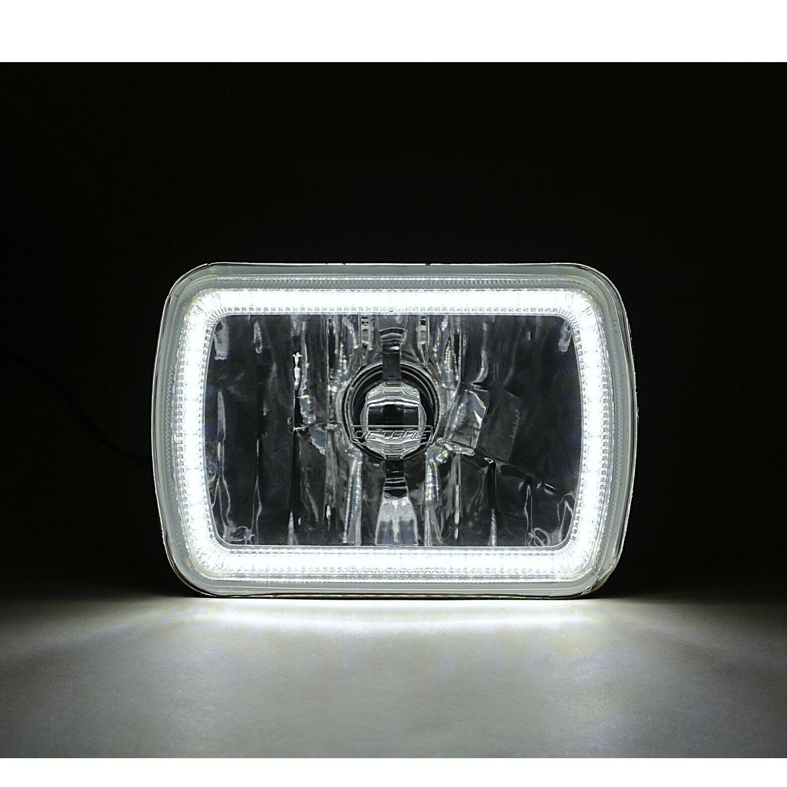 7X6" Square Crystal Halogen Headlight w/ White SMD Halo Ring