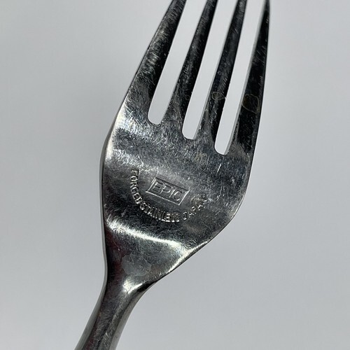 (1) Vintage Epic Forged Stainless Steel Japan Flatware LONG FORK Canoe Minor wear and scratches from use Approx. 7.5" In length Listing is for one fork C04