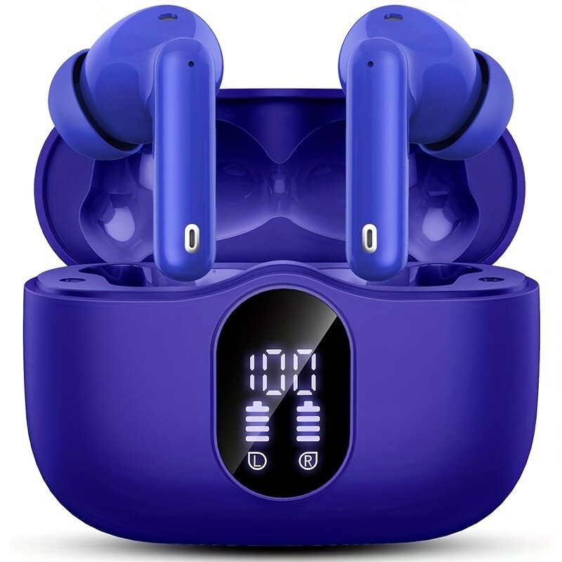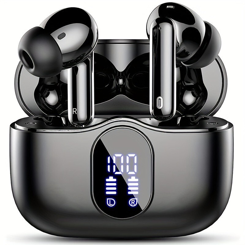 Wireless Earphones, Wireless 5.3 Earphones with Bass Stereo Sound, Earphones with Noise Cancelling Microphone And LED Display Screen, In Ear Earphones, 40 Hours Of Playback Time, Suitable for Laptops, Tablets, Mobile Phones, And Sports Exercise