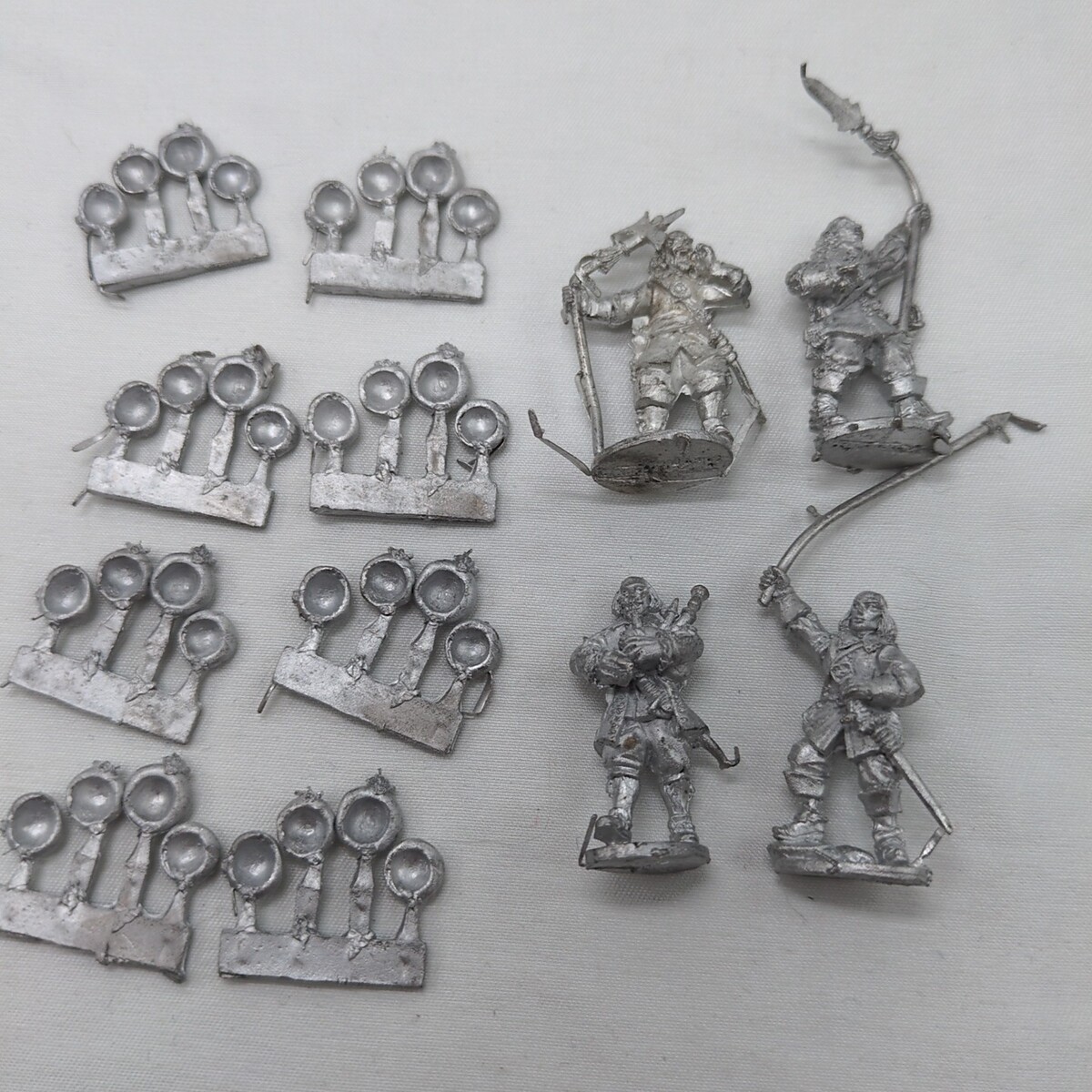 See pictures for the 3 sprues of miniatures, 1 sprue of bases, and 4 metal miniatures in a bag.