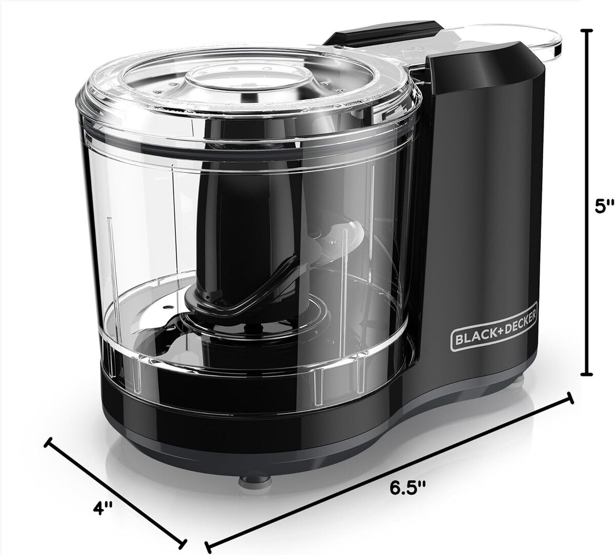 The compact design and convenient features make it a must-have for any home kitchen. 1.5-CUP CAPACITY - 1.5 Cup chopper is perfect for small jobs; enjoy fresh chopped herbs, bread crumbs, fruits and veggies, chocolate and more DISHWASHER SAFE - Dishwasher-Safe Removable Parts allow for easy and quick clean-up STAY SHARP STAINLESS STEEL BLADES - Bi-level stainless steel blades stay sharp, providing long-lasting performance EASILY ADD OIL WHILE MIXING - The chopper is equipped with oil holes, allowing you to easily add oil to hummus and vinaigrette as you mix without making a mess. 150W MOTOR FOR POWERFUL CHOPPING - 150W Power for chopping and mincing; Your electric chopper is equipped with a base, bowl, and lid; improved chopping assembly one-touch pulse control