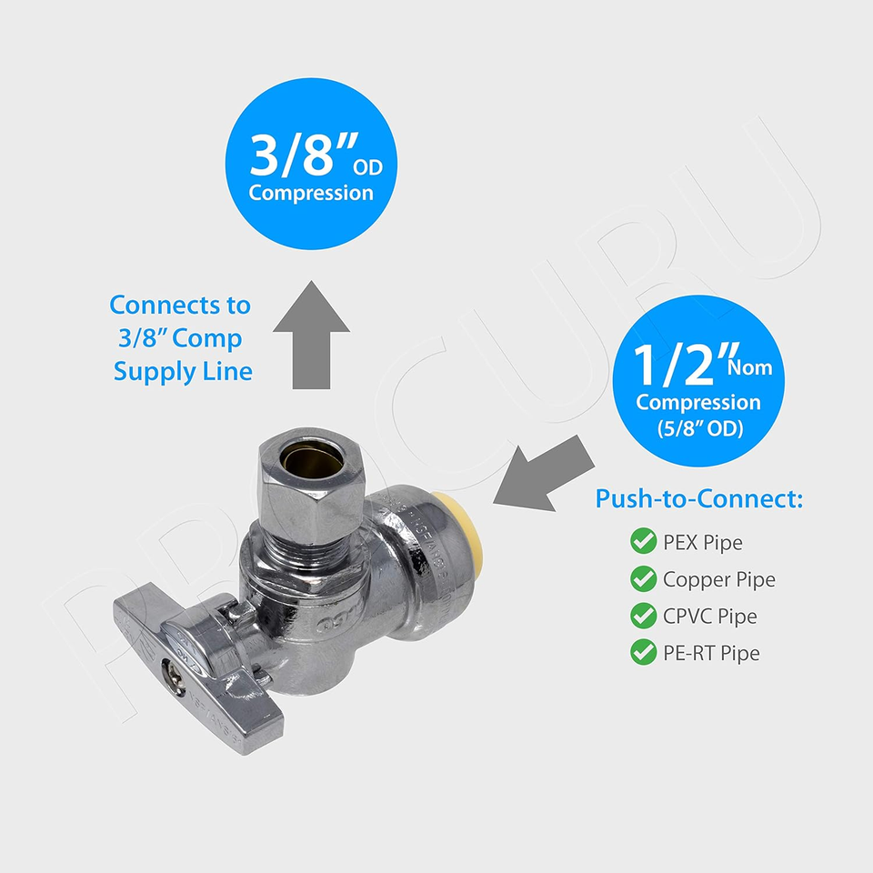 Procuru Pushfit Angle Stop Valve ? 1/2" Push x 3/8" Compression | Quarter-Turn | Lead-Free Brass