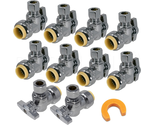 - 10-Pack Pushfit Angle Stop Valve 1/2" Push x 3/8" Comp | Brass Quarter-Turn Shut