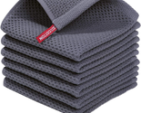 100% Cotton Waffle Weave Kitchen Dish Cloths, Ultra Soft Absorbent Quick Drying Dish Towels, 12 X 12 Inches, 6-Pack, Dark Grey