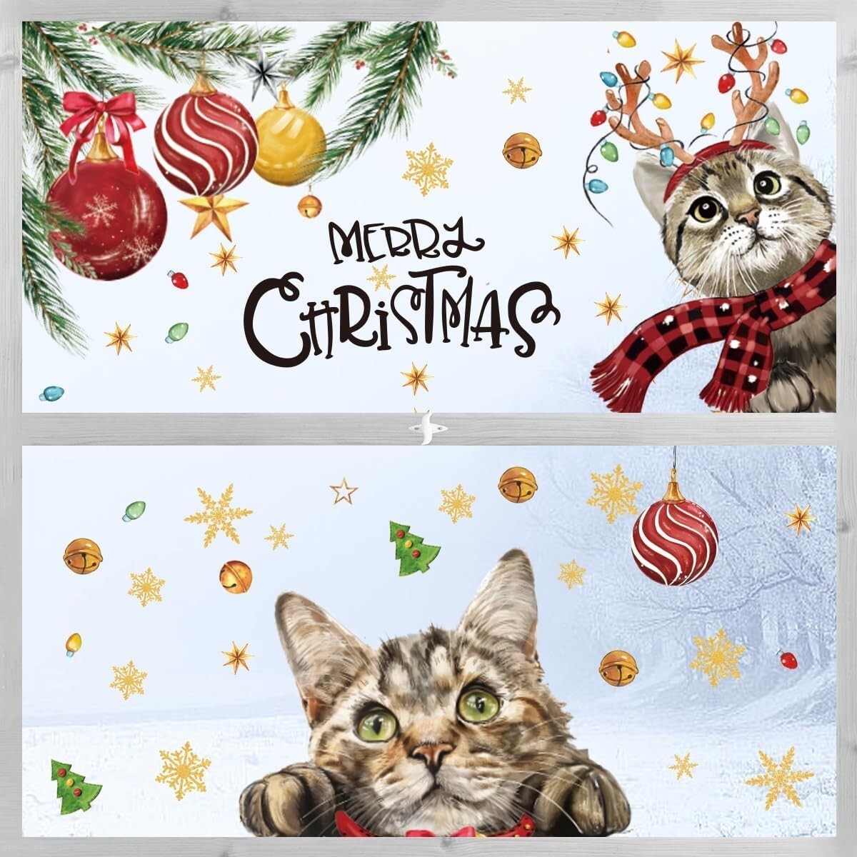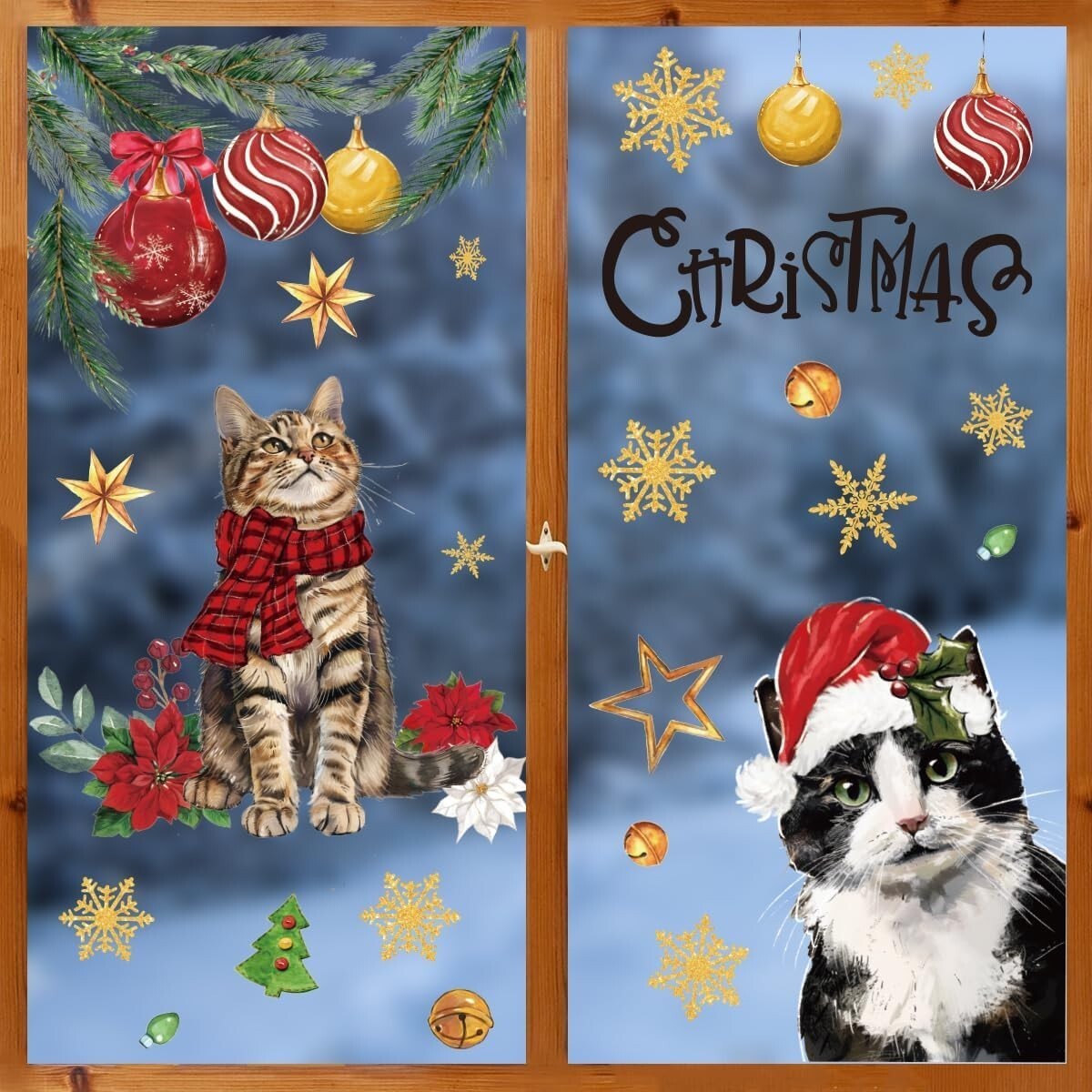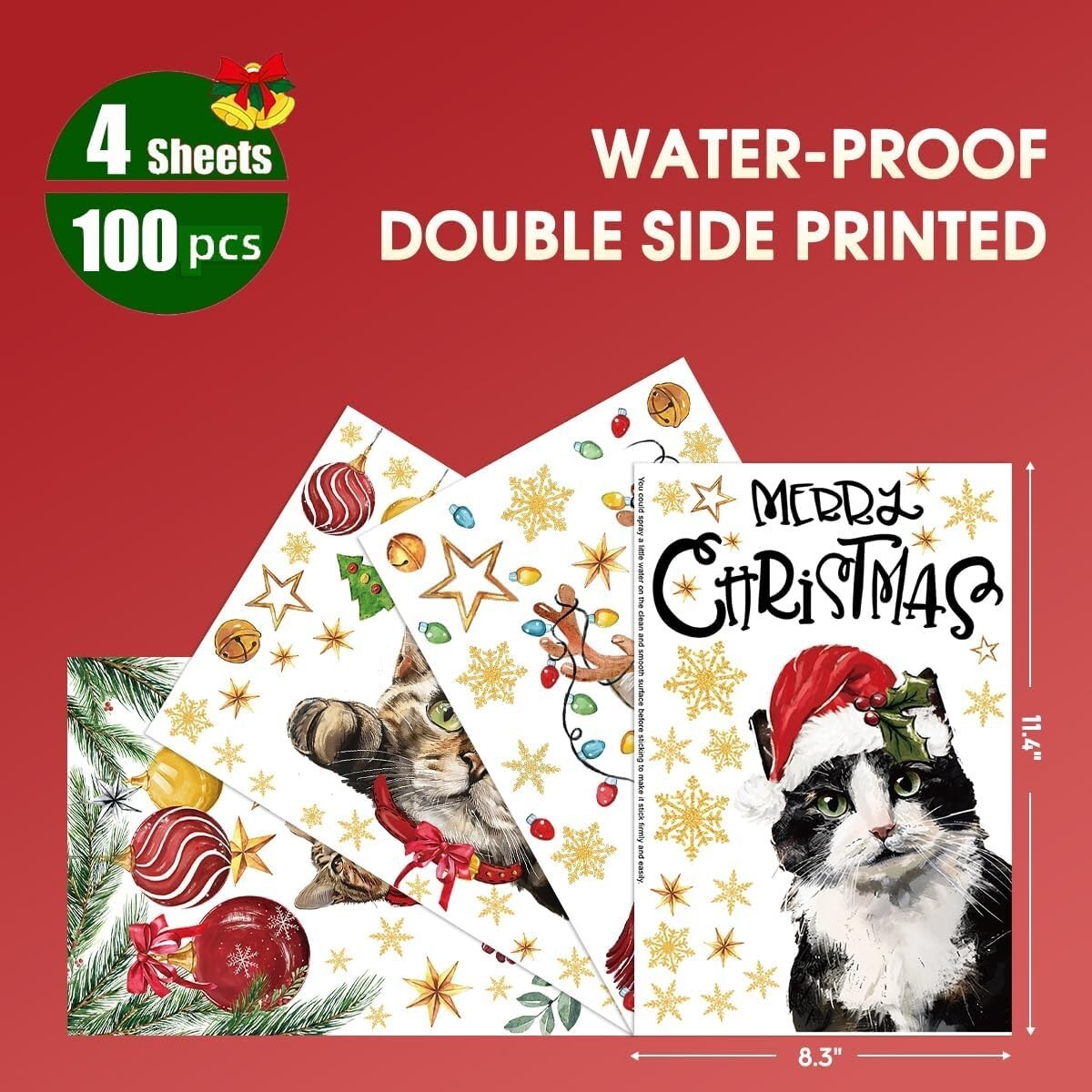 - 100 PCS Christmas Window Cling Sticker, Xmas Bell Ball Ornaments Cat Snow for Ho