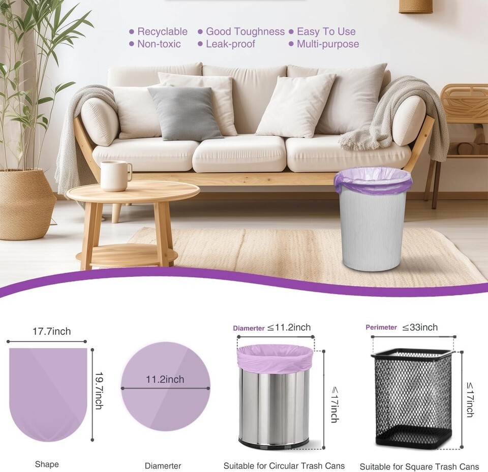 About this item ?4 GALLON GARBAGE BAGS?: Ideal for 10-15L or mini trash can whether it is living room clutter or bathroom garbage, it can easily accommodate without frequent replacement, saving time and effort. ?Sufficient quantity?: Each pack contains 105 garbage bags, which is sufficient quantity to meet the needs of families for long time use without frequent purchase. ?STRONG AND DURABLE?: The garbage bag is made of high-strength material, which is not easy to stretch and break, and it can keep its shape even when it is filled with heavy objects to ensure that the wastebasket trash won't leak out. ?NO SMELL?: Odorless garbage bags are effective in reducing indoor odors and these trash bags 4 gallon work very well for light trash without any smell, really friendly to people who are sensitive to smell.