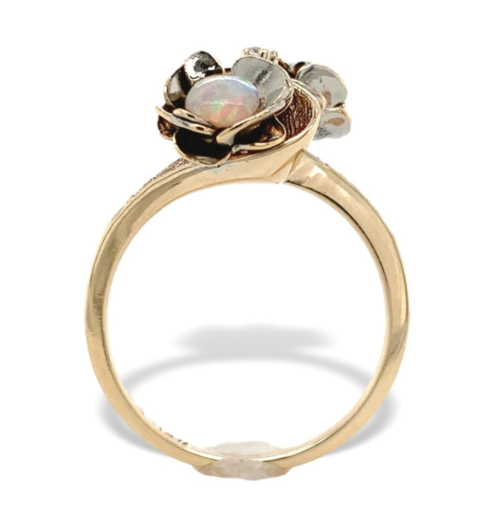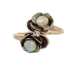 10k Yellow Gold Bypass Ring with Australian Opals in Flower Settings (#J7400)