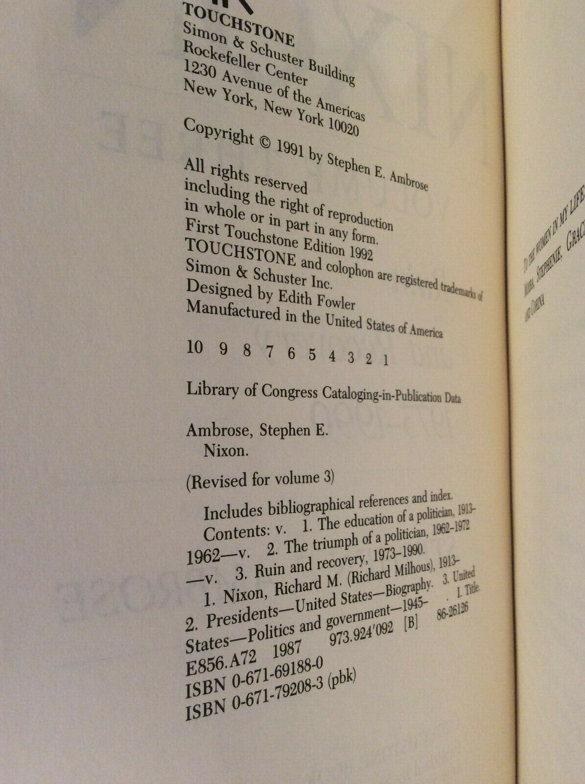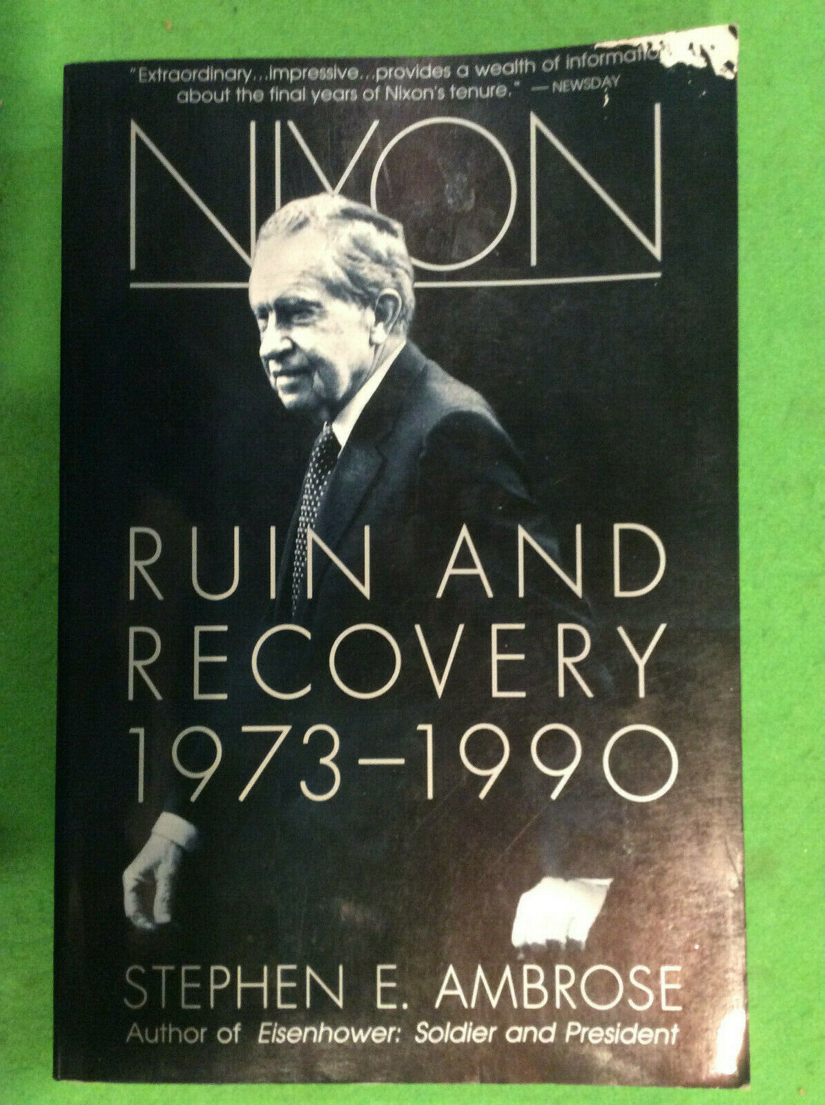 NIXON by STEPHEN E. AMBROSE (AUTHOR OF EISENHOWER: SOLDIER AND PRESIDENT) RUIN AND RECOVERY 1973 - 1990 VERY GOOD CONDITION - SMALL AMOUNT OF WEAR TO UPPER RIGHT HAND CORNER OF SOME PAGES) FIRST EDITION 10 9 8 7 6 5 4 3 2 1 STATED SOFTCOVER PICTURES ARE OF THE ACTUAL BOOK BEING SOLD (NO STOCK PHOTOS USED) FREE SHIPPING TO ALL 48 STATES THROUGH THE USPS MEDIA MAIL ALL BOOKS SHIPPED IN BOXES NO SHIPPING TO ALASKA OR HAWAII