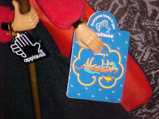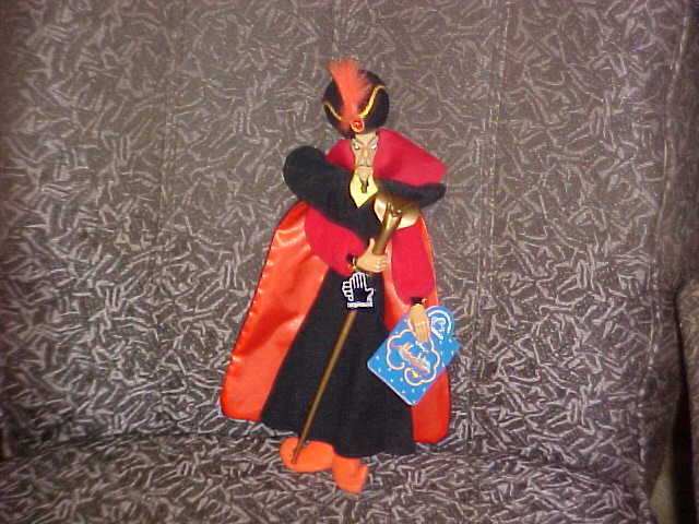 Hello everyone, Now at bottom of each of our item page is our word rating plush chart. Please check it out and read full item description before using the buy it now price. Ok here's a extremely rare medium to large Disney Evil Jafar Plush Doll With Tags From Disney Classic "Aladdin", which is in excellent use condition. Jafar is wearing his evil black and red outfit and cape, black hat with orange feather and shiny orange gem stone, rubber face, holding his dark deep gold Cobra head dagger in right hand, Hang tag attach to left hand and Applause tag symbol attach to right hand, and measures 12 inches long. Tush body seam tag reads, 1993 Applause,. The Walt Disney Company. Please see picture's. Winner bidder pays by Zone and Zip Code for priority mail shipping (up to 2 lbs) with handling and delivery confirmation of (2.55), US only. Sorry we do Not Ship to Canada or Internationally. Please only bid if you have a united states street address to ship to. Sorry but Immediate Paypal payment is required when using Buy It Now , E-Checks from Paypal are held 3-5 business days until it clears before item is ship. Since we are limited on our picture space, pic will be deleted after the end of auction, so if you would like to see pic after the auction, please print out picture before the auction ends. We due not do accept returns, so Please read full item description, all sales are final and are sold as worded in item description. All items are offer as is condition. We ship as soon as payment arrives. Please take a moment and check out our other great Disney plush and character toys which are listed sale this week. New Rating Plush Chart. NEW: Comes from a factory or department store and has not played with. MINT Or LIKE-NEW: Looks new but might still been played with but shows no wear on the Plush itself but still might have a flaw (like a odor, etc., and might not been wash even though we strive very hard to make all our plush smell free but can not guaranteed them, this reply's to all word plush rating charts) EX. COND: Some minor play wear and might have some minor flaws which would be in the item description. VERY GOOD: Has been played with and has flaws. GOOD: Has been played with a lot. POOR: We try not to sell any real poor condition toys. Thank-You and Have A Fantastic Week