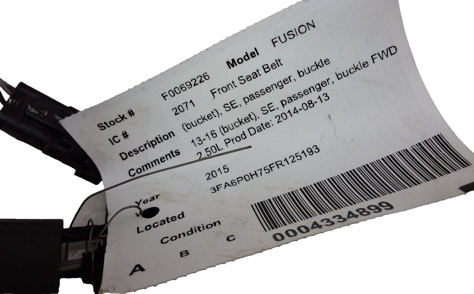 2013 through 2016 Ford fusion SE right front passenger seat belt buckle.