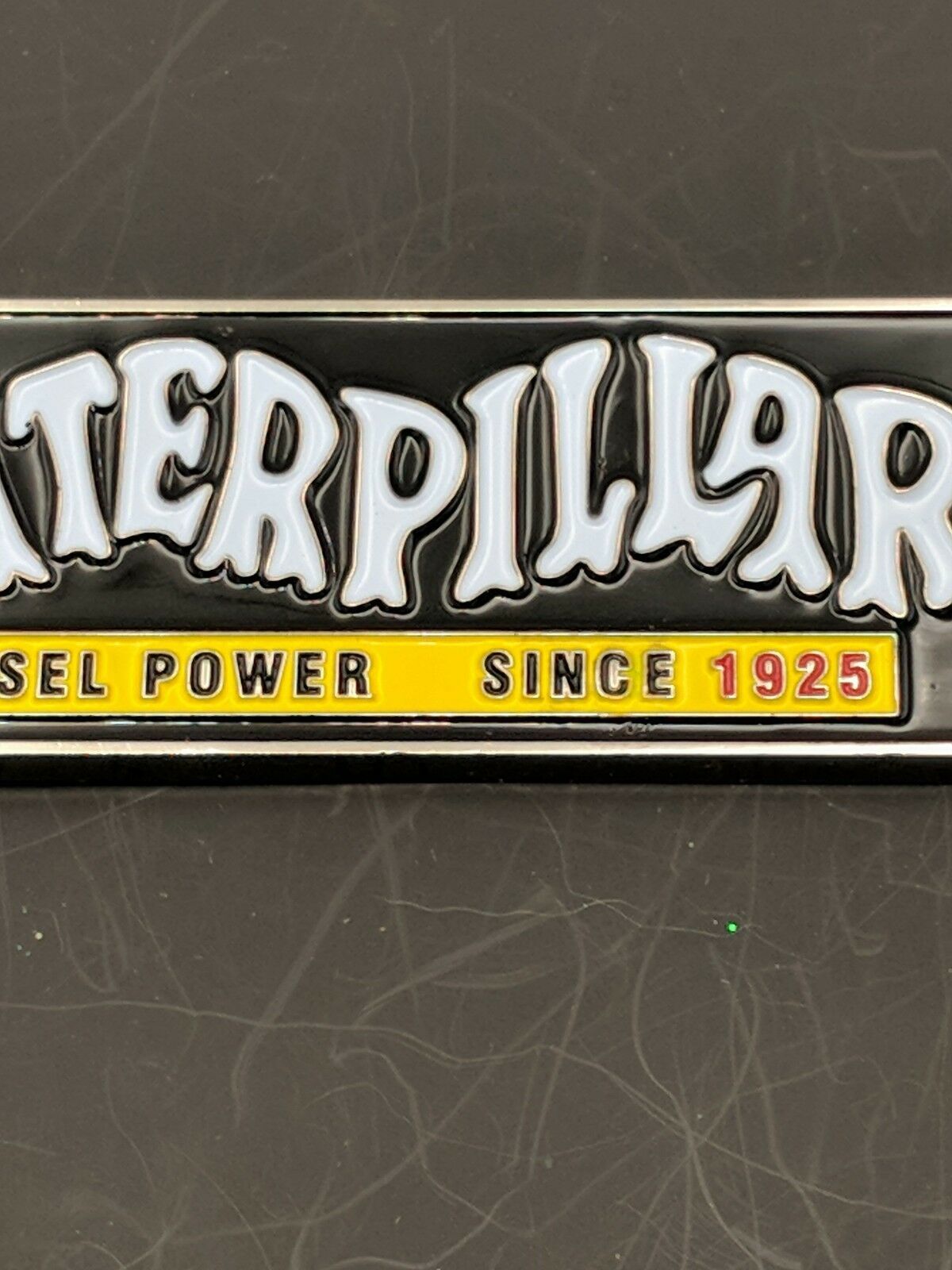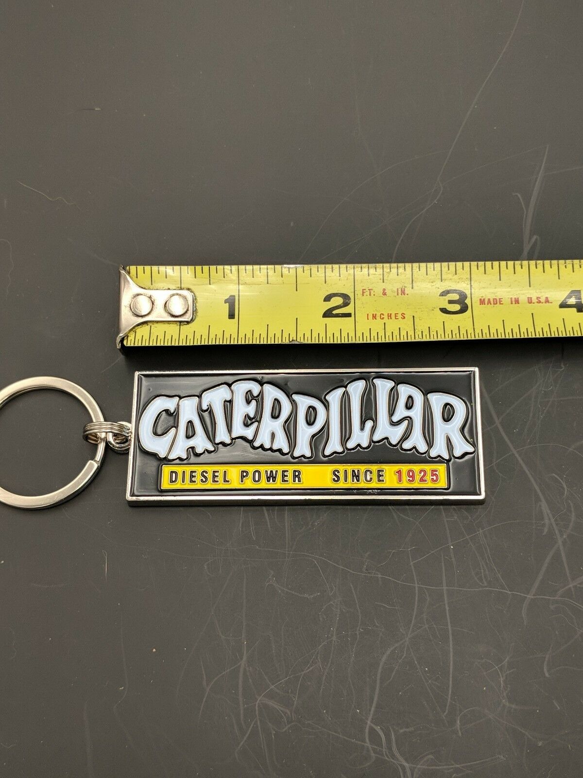 Nicely crafted, single sided old school style Caterpillar logo keychain. Measures 3" long by 1 1/4" wide and a healthy 3mm thick. Pretty heavy duty piece. This is the same writting caterpillar used when started in 1925. No disappointments.
