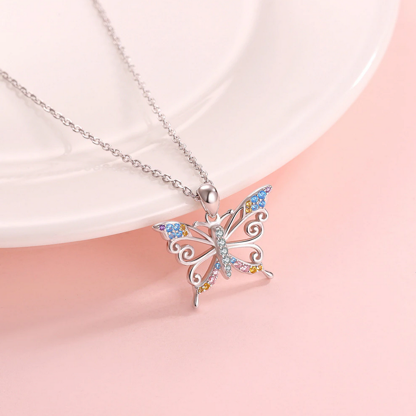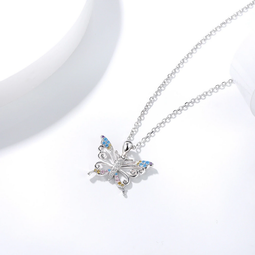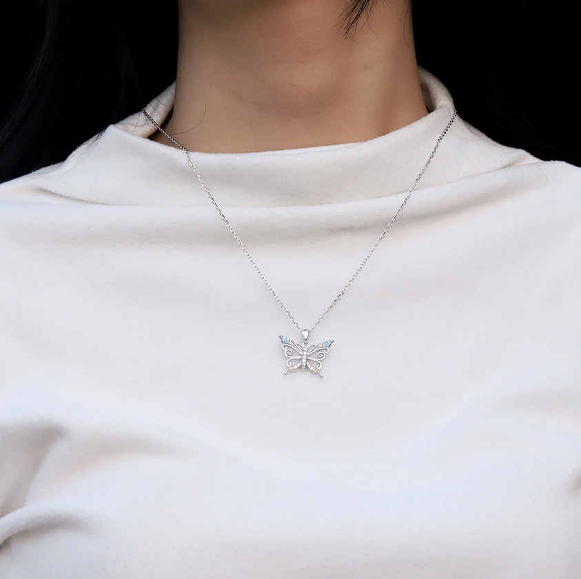 - Exquisite 18K 925 Sterling Silver MultiColor Zirconia Butterfly Pendant Necklace