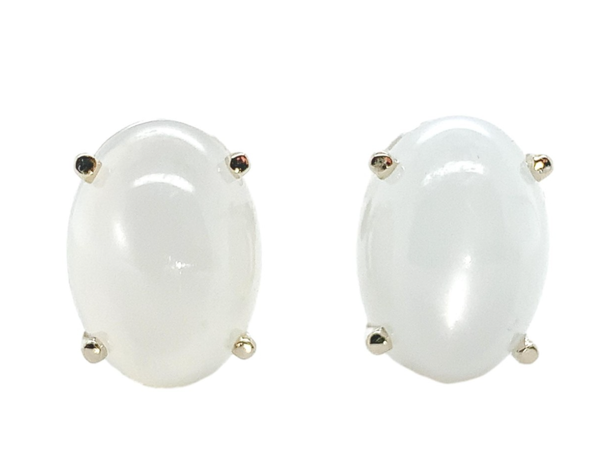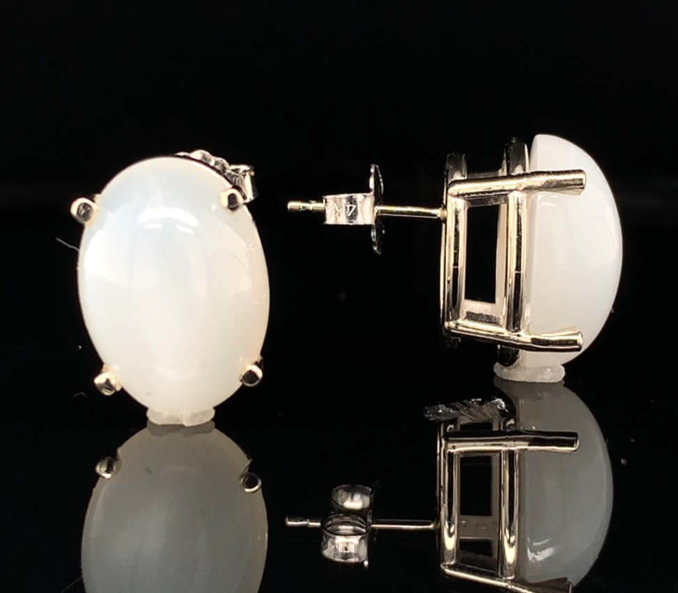 - 14k White Gold Large Oval Genuine Natural Moonstone Stud Earrings 11.20ct #J7382