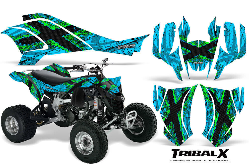 - CAN-AM DS450 GRAPHICS KIT CREATORX DECALS STICKERS TRIBALX GREEN-BLUEICE
