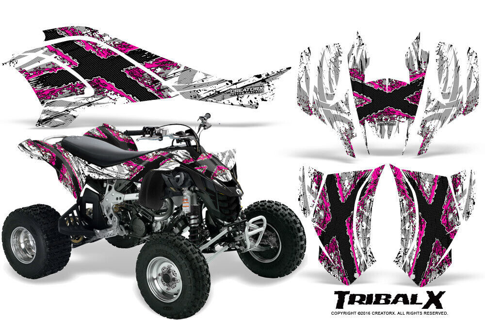 - CAN-AM DS450 GRAPHICS KIT CREATORX DECALS STICKERS TRIBALX PINK-WHITE
