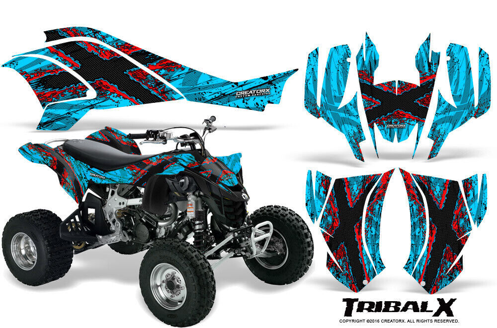 CAN-AM DS450 GRAPHICS KIT CREATORX DECALS STICKERS TRIBALX RED-BLUEICE