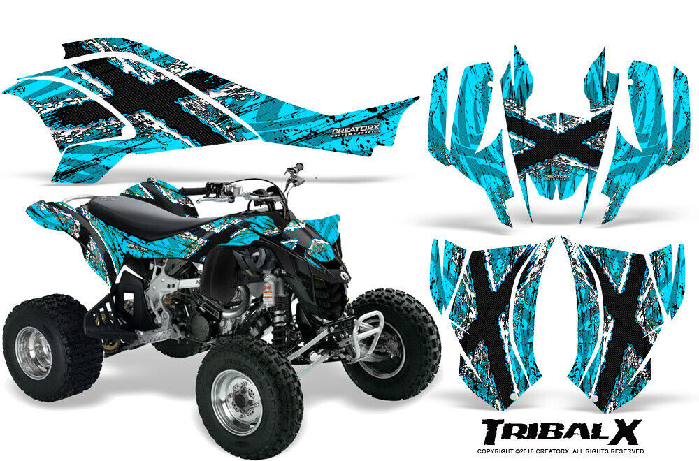 - CAN-AM DS450 GRAPHICS KIT CREATORX DECALS STICKERS TRIBALX WHITE-BLUEICE