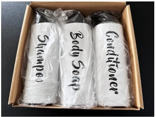 ??Modern Style Design?: A stylish luxurious way to organize your bathroom! Our set of Three shampoo dispenser comes in an elegant square design with sleek edges and exquisite elegant silkscreened script permanent that will make your bathroom feel like a high-end spa salon.