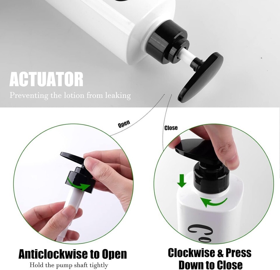 ??Leak-Proof Easy to Refill?: When you package this refillable shampoo and conditioner bottles to beach or swimming pool, press down and twist clockwise to close, preventing the lotion from leaking. Twist anti-clockwise to open and use. Shower soap dispenser comes with a premium 4cc wide pumps opening, making it super easy to take any liquid in and out of them in no time. No mess, no fuss, no worries!