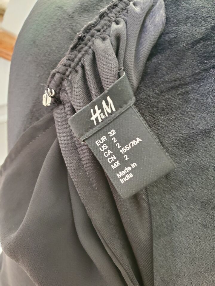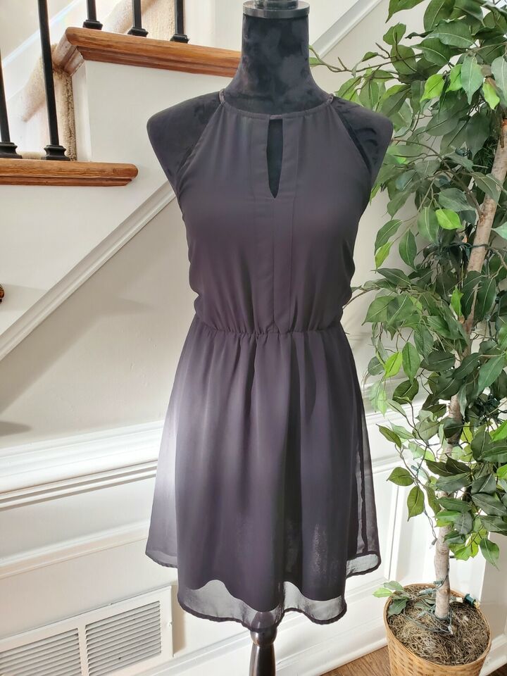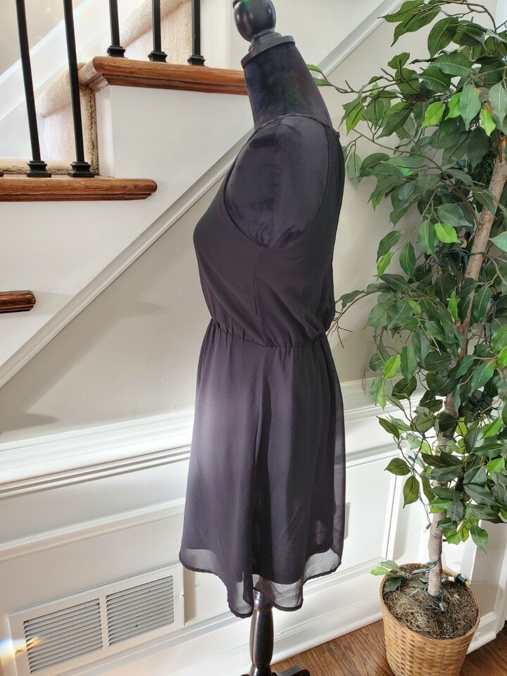 H M Women Solid Black Polyester Halter Neck Sleeveless Knee Length Dress Size 2