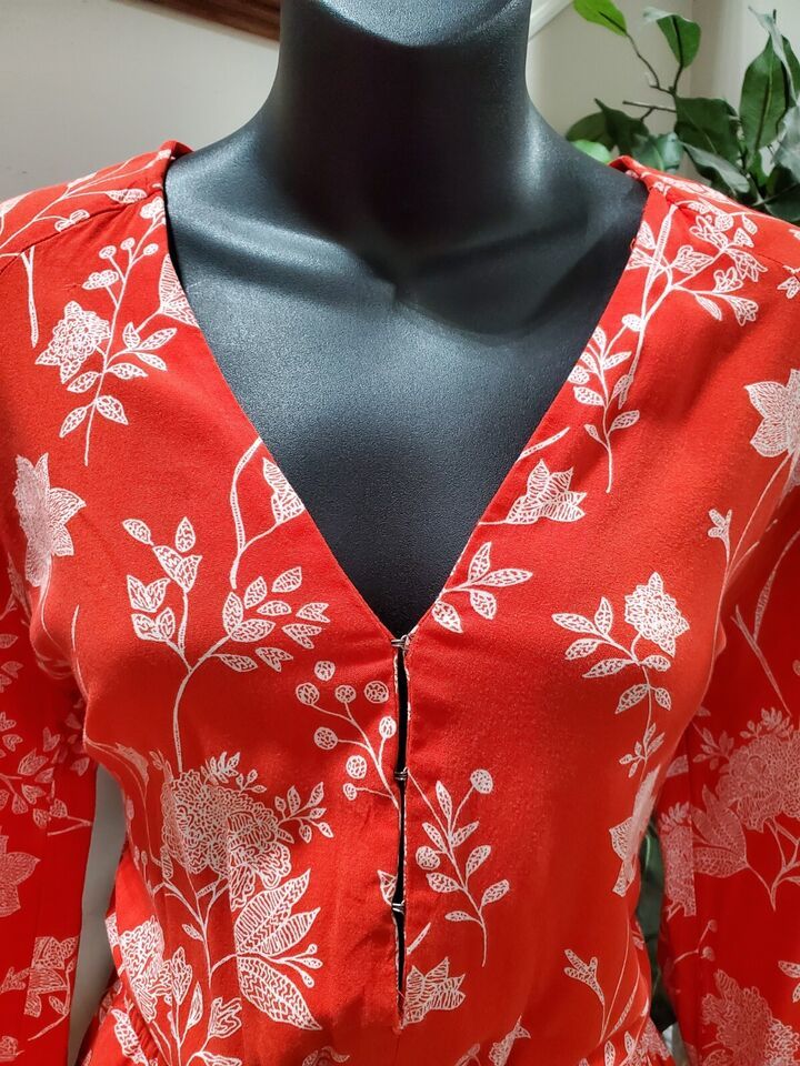 H M Women's Red Floral 100% Viscose V-Neck Long Sleeve Casual Romper Size 8.