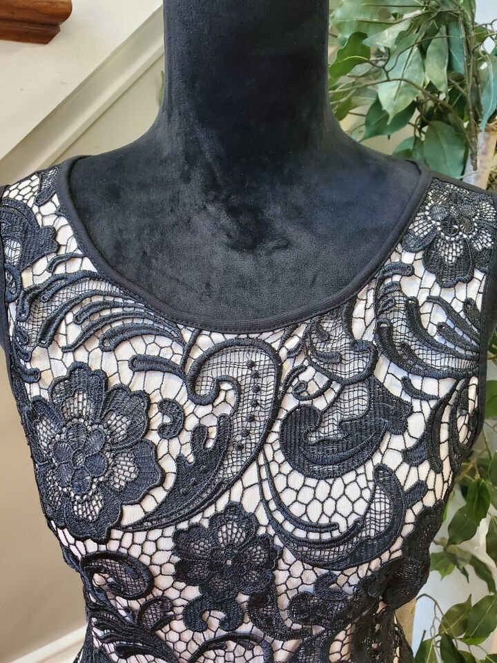 - H&M Womens Cream Black Lace Floral Sleeveless Back Zip Knee Length Dress Medium