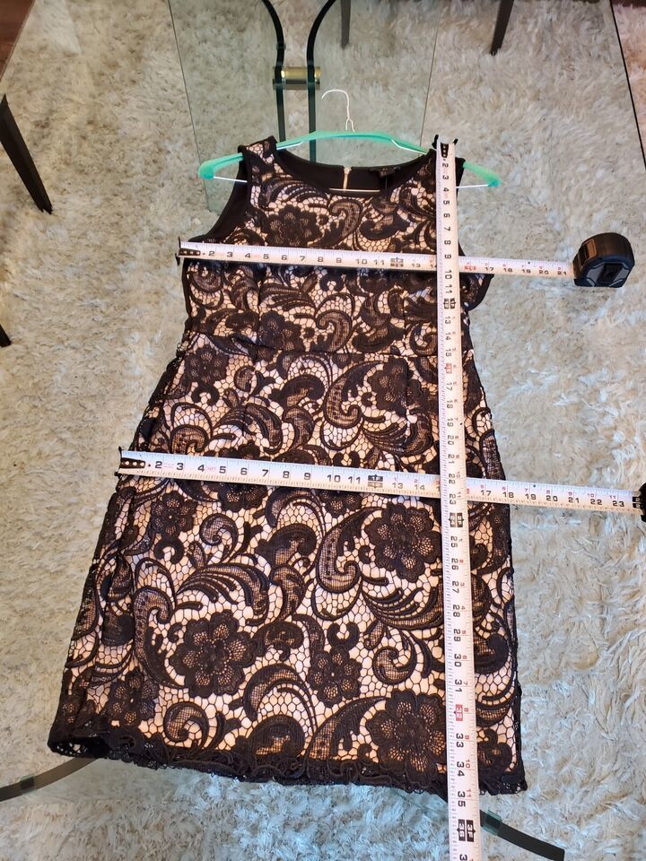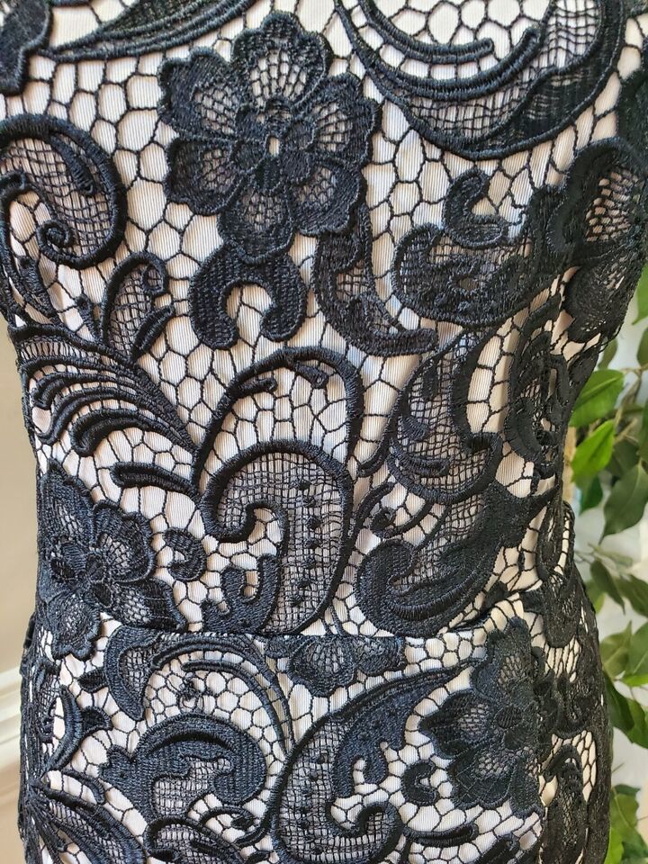 Elevate your wardrobe with this gorgeous H M dress. The cream and black floral lace design is perfect for any occasion, whether it's a casual day out or a formal event. The dress features a round neck and collarless style with a back zipper closure, adding a touch of elegance to your look.