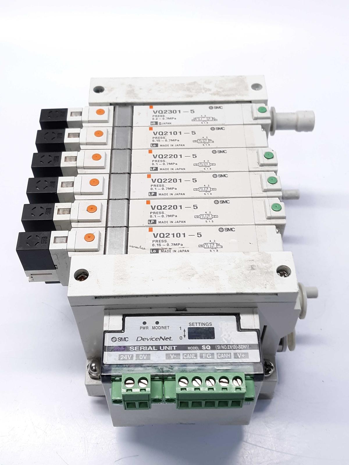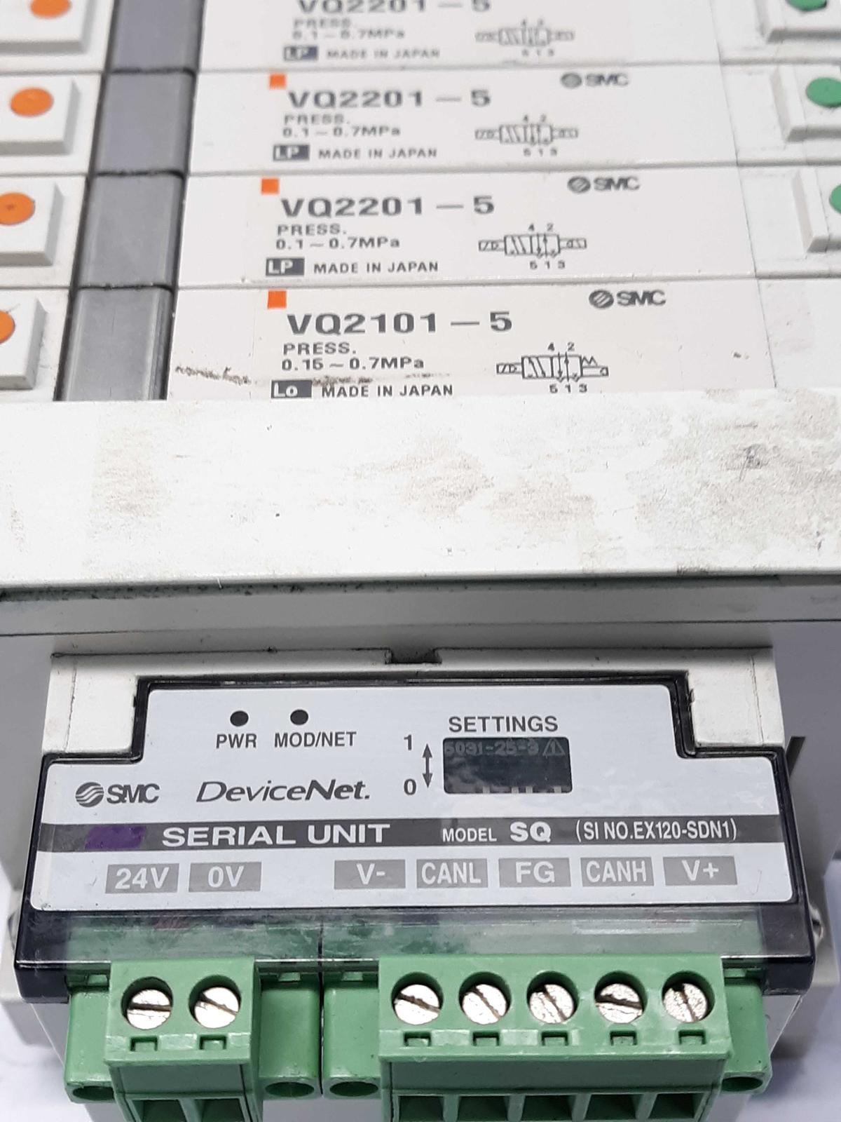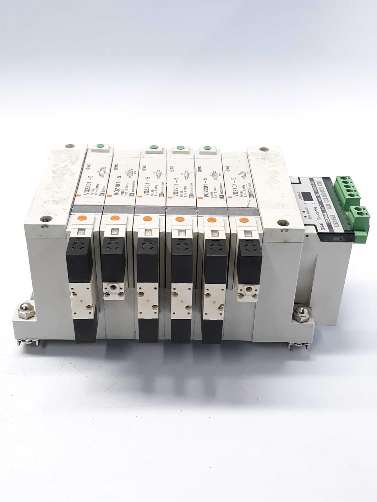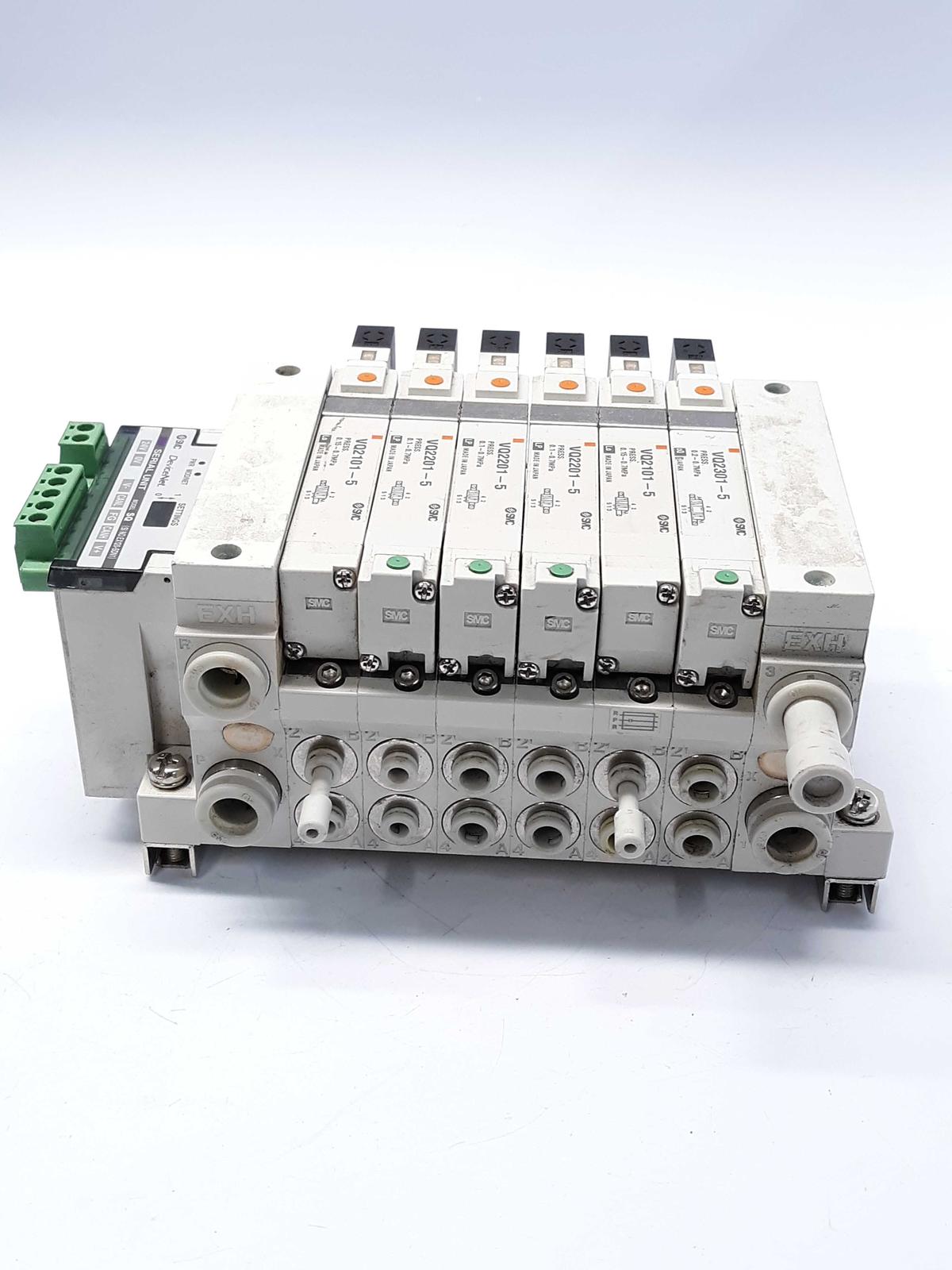 - SMC EX120-SDN1 Serial Interface Unit w/ (6) VQ2101-5 Solenoid Valves 24VDC Valve