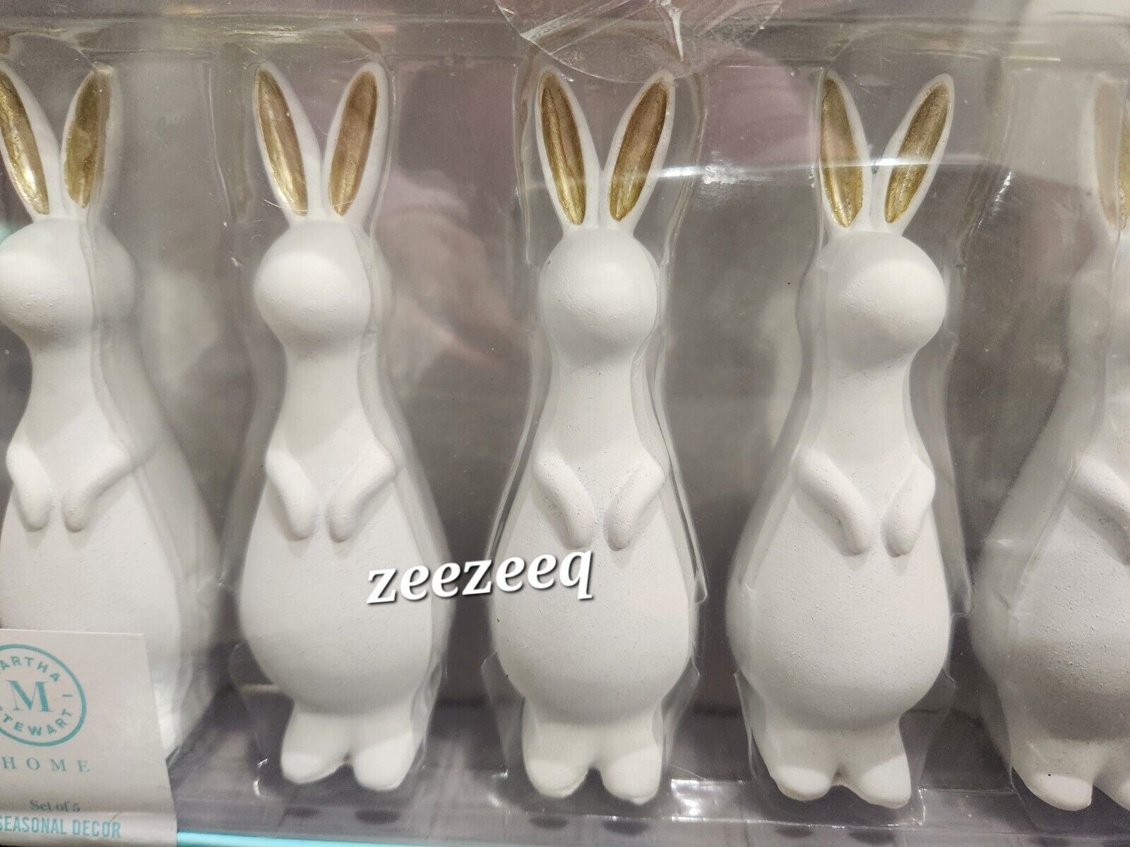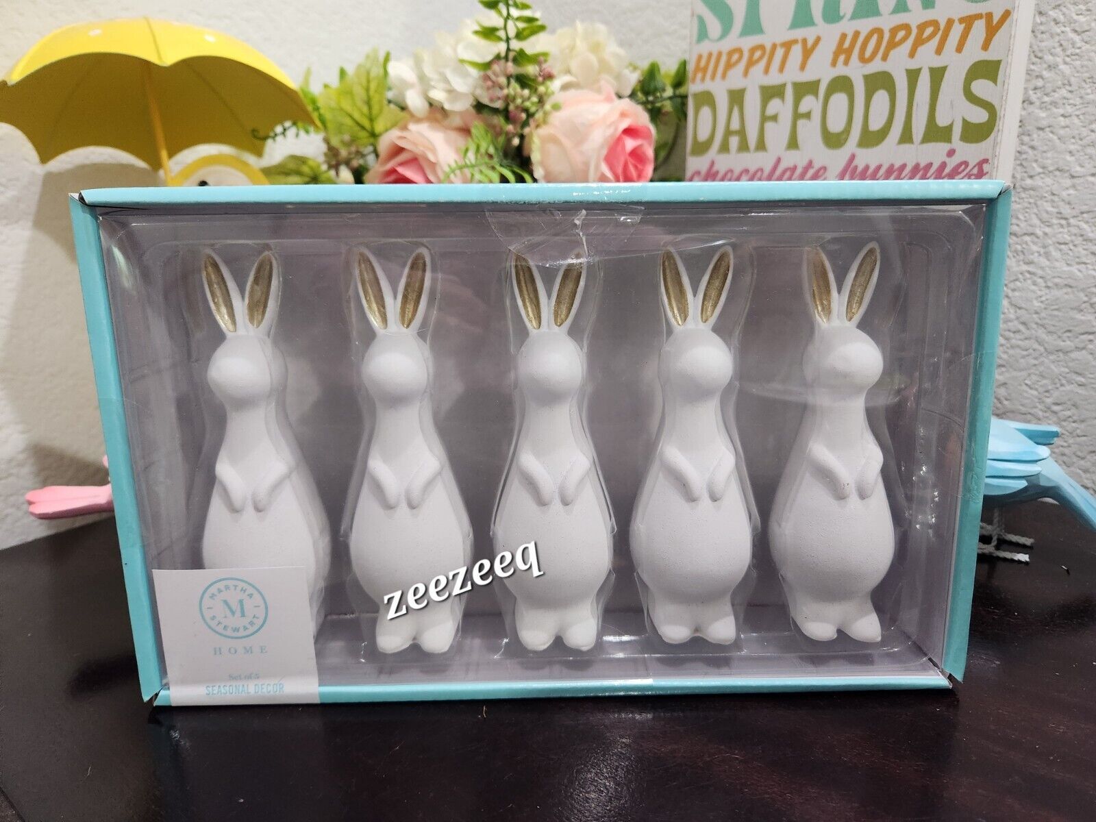Up for sale are these adorable Martha Stewart figurines for your Easter decor. These are sooo cute! These are white/gold resin bunny mini figurines. You can place them on a tier tray or any tabletop. Measures approx 5.25" tall. New
