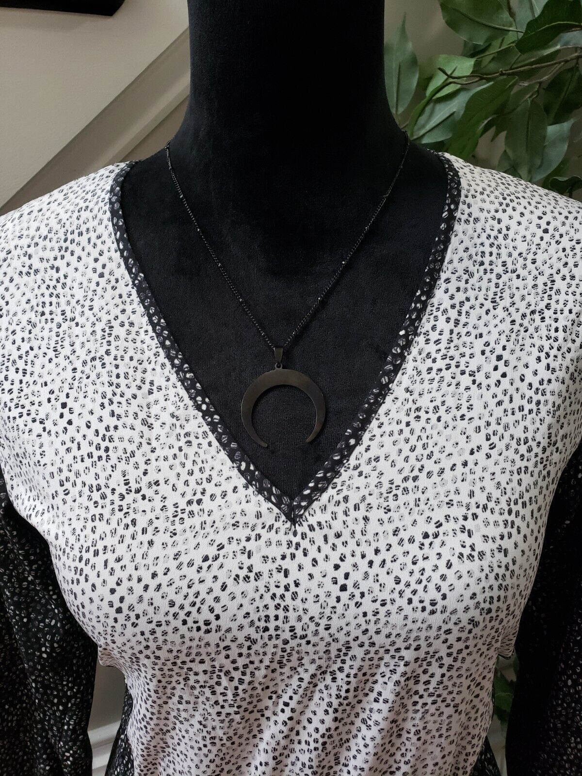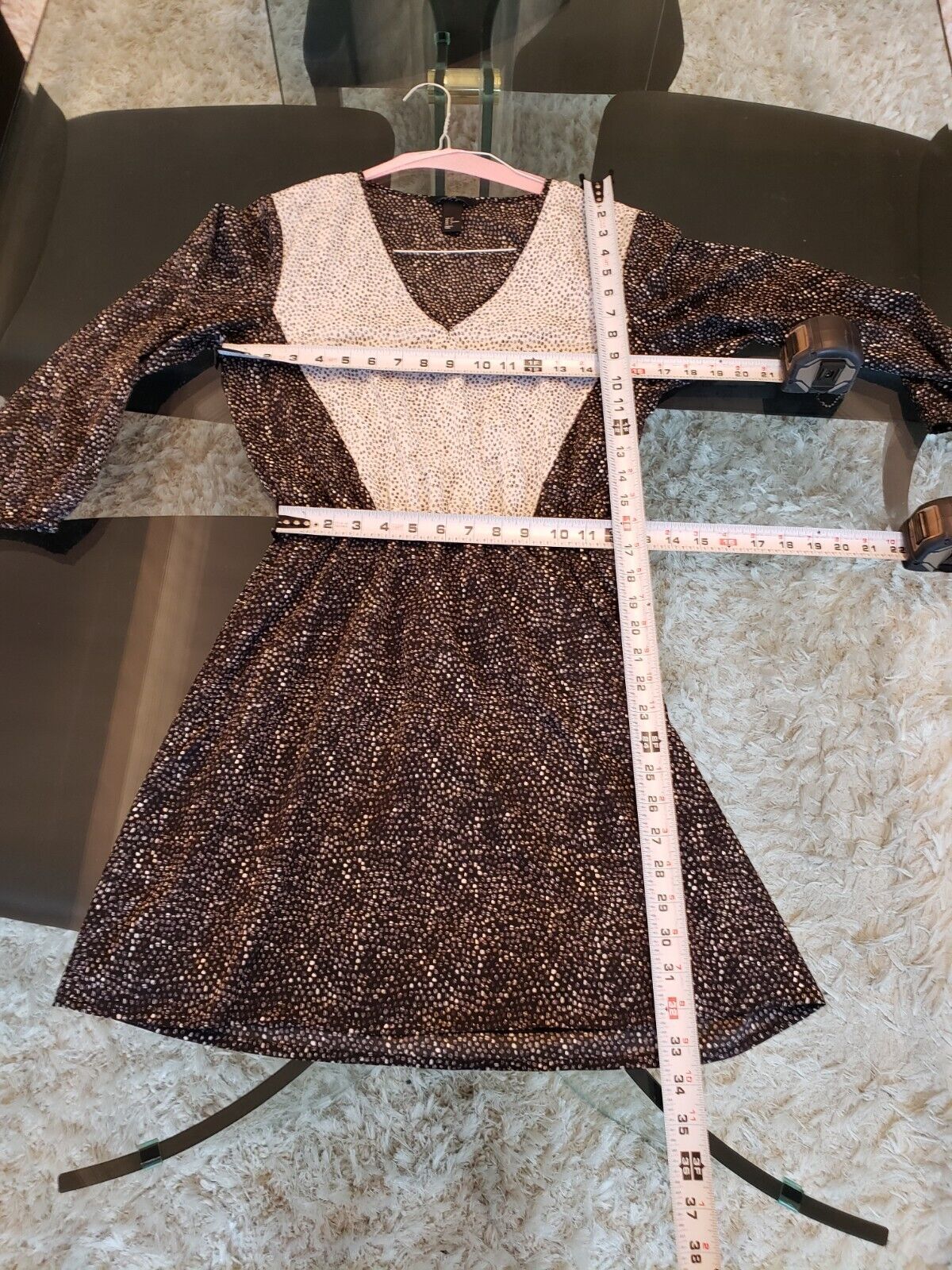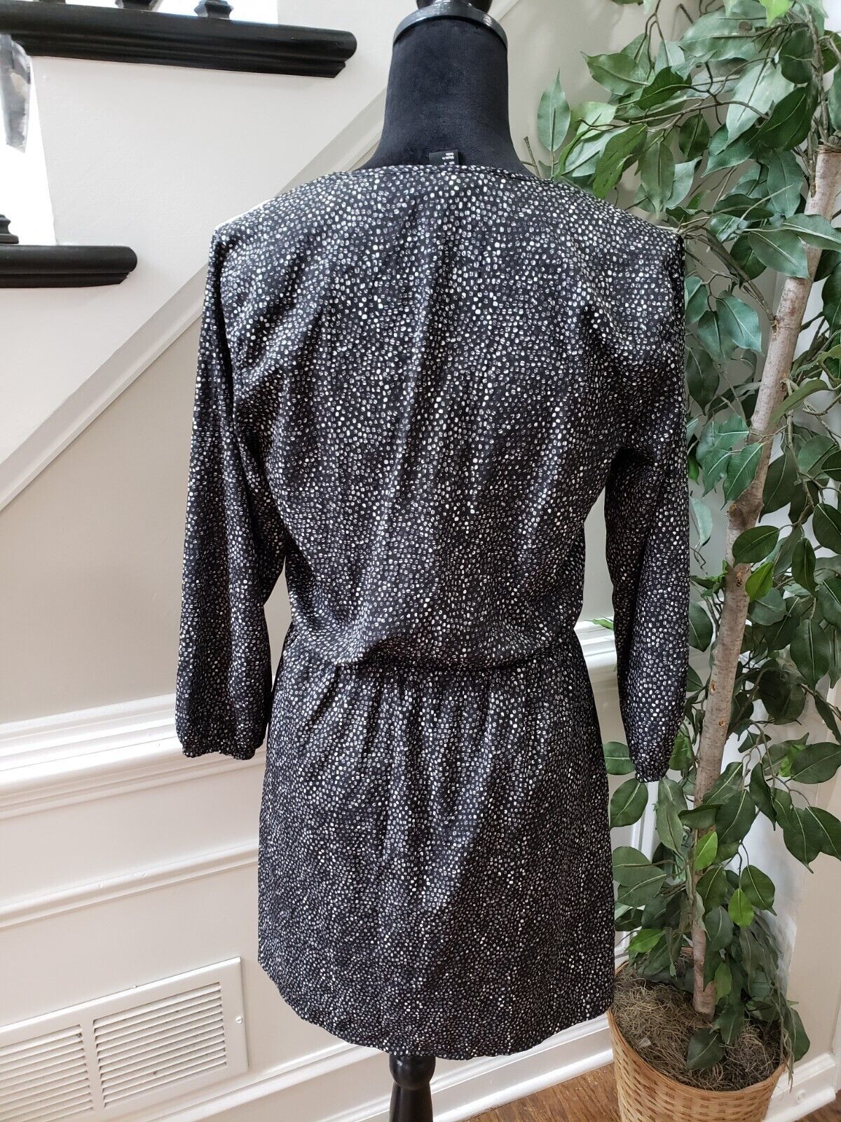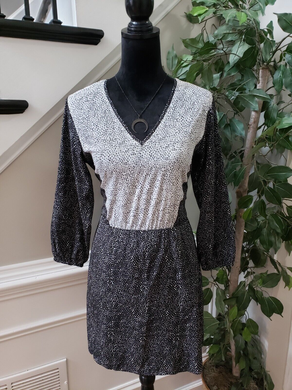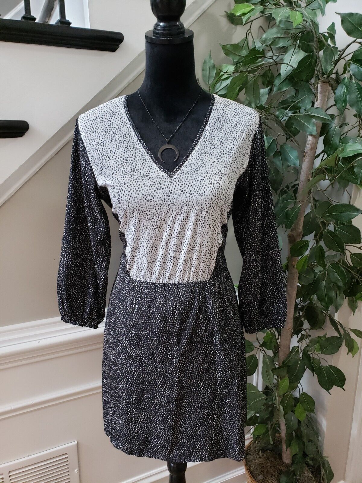 H M Women's Black White 100% Polyester V-Neck Long Sleeve Knee Length Dress 4.
