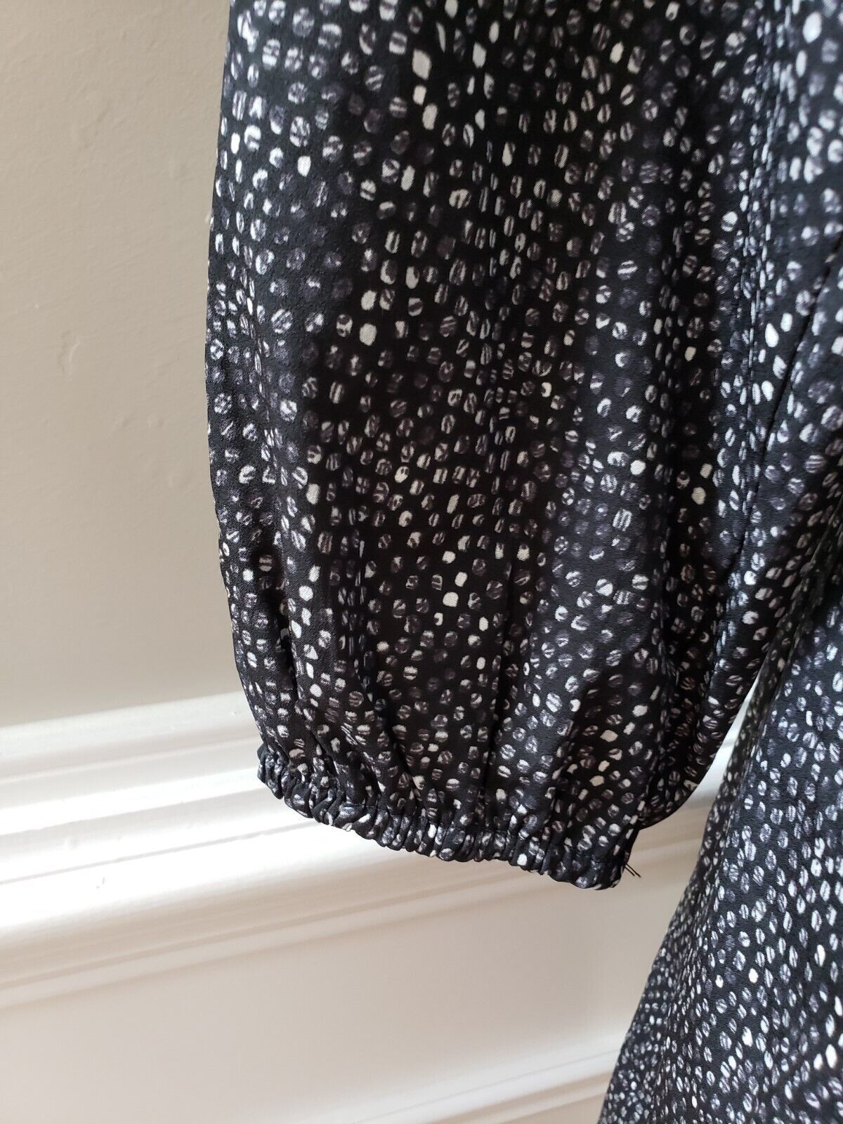 H M Women's Black White 100% Polyester V-Neck Long Sleeve Knee Length Dress 4