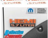Decals (stickers) designed to overlay the front face of the HEMI and 5.7 LITER sections of the factory fender emblems.