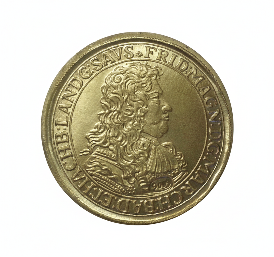 Presentando una exquisita restriccion de medalla de arte historico con fecha de 1681, un impresionante tributo a la historia ducal europea. Esta medalla de fantasía cuenta con un busto detallado de una figura principesca en el anverso, que recuerda a la realeza y la artesanía europeas del siglo XVII. El intrincado diseño y las letras clasicas evocan una sensacion de grandeza y significado historico. El reverso muestra con orgullo un escudo de armas ricamente detallado, coronado y flanqueado por la fecha '1681', mostrando heraldica compleja común a la epoca. Esta hermosa pieza conmemorativa es un artículo de coleccionista excepcional, perfecto para entusiastas de la numismatica y cualquier persona interesada en el arte historico. Es una restriccion similar a una prueba, que ofrece un ejemplo prístino de una ficha de estilo antiguo, sin el desgaste de siglos. Una pieza de arte verdaderamente única, ideal para exhibir o como una valiosa adicion a cualquier coleccion. Palabras clave: restriccion, coleccionable, medalla, historico, conmemorativo, numismatico, artículo de coleccionista, ficha, prueba, pieza de arte, historia europea, estilo antiguo, heraldica, realeza, ducal aleman.