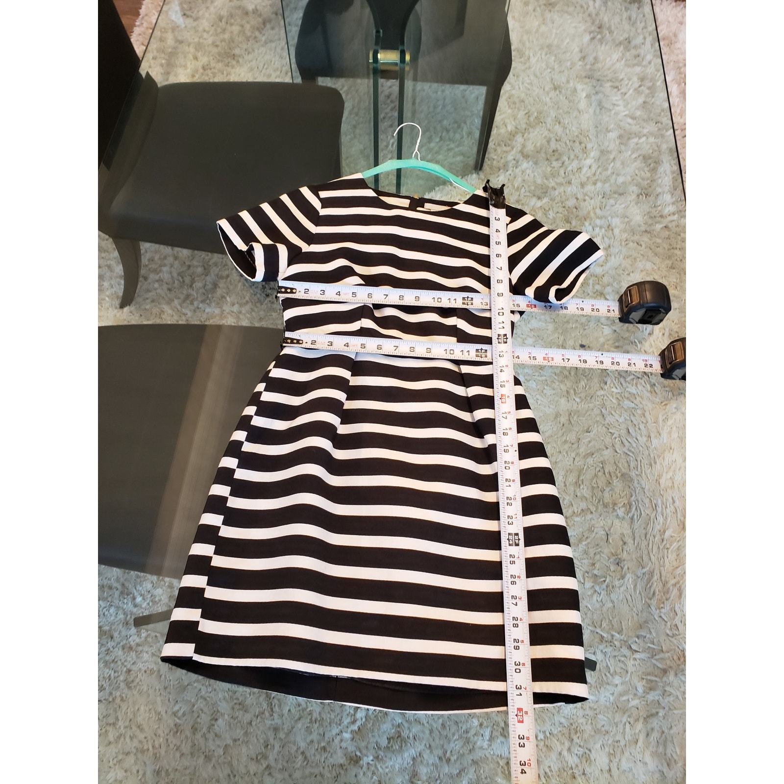 - H&M Dress Women Size 8 Black White Striped Viscose Blend Lined Short Sleeve