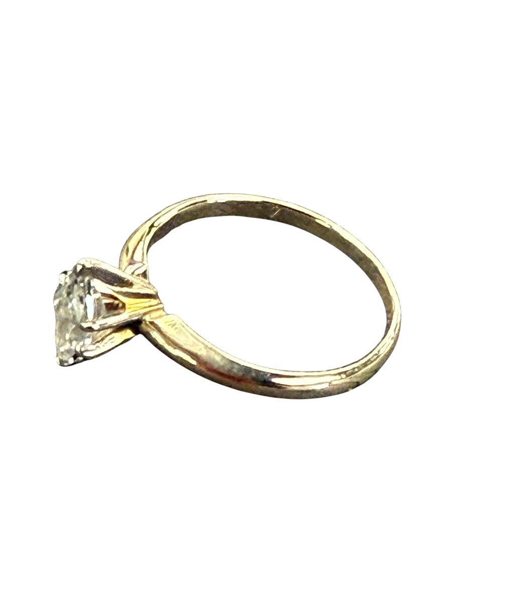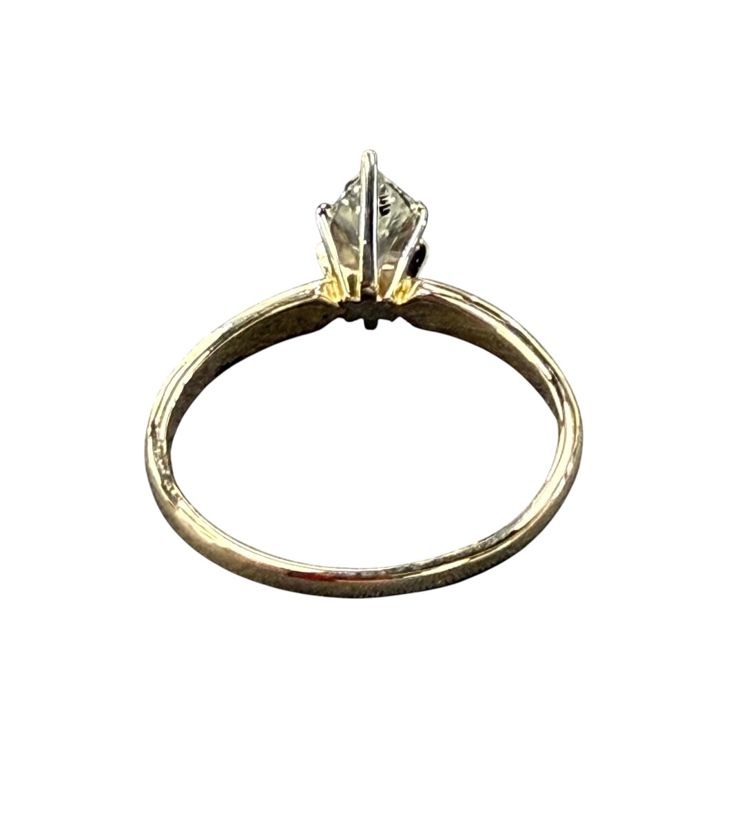 Type: Solitaire ringWeight: 1.2Karat: 14ktMetal: Yellow GoldGender: Women'sStyle: SolitaireSize / Length: 6.5Owner applied: 14K 67Stone 1 quantity: 1Stone 1 shape: MarquiseStone 1 color: ClearStone 1 weight (total): .60ctStone 1 type: DiamondCondition:Used