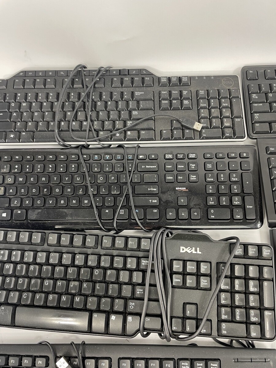 Lot OF 10 - USB Wired Standard Layout Keyboard 104-Key Mixed Random Brand Models As per follow 1 x Logitech Y-U0009 1 x Kensington K64370A 1 x Amazon Basics KU-0833 1 x DELL RT7D50 1 x KLIM 1 x HP KU-3016 2 x DELL KB522p 1 X DELL USB 1 X Generic USB great condtion acquired from OFFICE closing