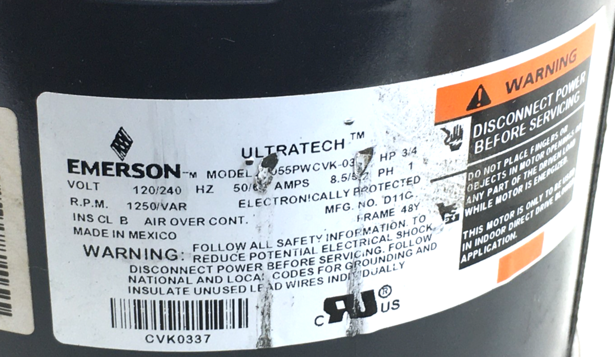 US Motors M055PWCVK-0337 Blower Motor 0131M00271 3/4HP 240V CCWLE used #MB922