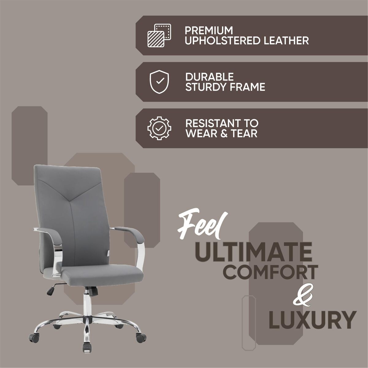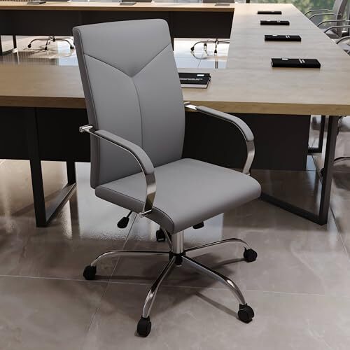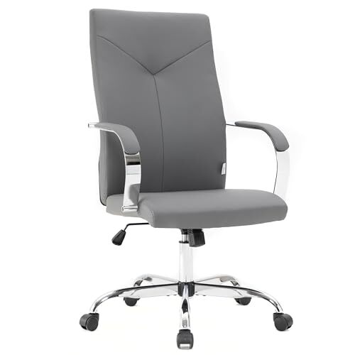 Experience unparalleled comfort and sophisticated style with the LeisureMod Sonora High Back Leather Office Chair in Grey. This chair is engineered for modern professionals who demand both ergonomic support and a touch of elegance in their workspace. Crafted with a robust, polished steel frame featuring a sleek chrome finish, the Sonora chair guarantees lasting durability and elevates the aesthetic of any office environment. The thoughtfully designed high backrest contours to the spine's natural curvature, providing exceptional lumbar support to promote correct posture and reduce strain during extended periods of sitting. The premium leather upholstery, enhanced with Y-shaped reinforced stitching, adds a luxurious feel while ensuring long-term resilience. Personalize your seating experience with the adjustable height settings, effortlessly controlled by a smooth gas lift mechanism, allowing you to achieve the optimal position for any task. Fine-tune your comfort further with the tilt lock functionality and tension control, providing customized support whether you're engaged in lengthy conference calls or focused on intricate projects. The chair?s 360-degree swivel base, combined with dual-wheel casters, enables effortless movement across various flooring types, including carpet and hardwood, making it a versatile addition to executive offices, conference rooms, or home workspaces. The open-frame armrests, thoughtfully padded for additional comfort, strike a perfect balance between an airy aesthetic and supportive structure. With dimensions of 24.8 inches wide by 26 inches deep by 44.9-48 inches high and a weight capacity of up to 250 lbs, the Sonora office chair is designed for easy assembly and lasting performance. The seat measures 20.5 inches wide by 19.3 inches deep, and the backrest height is 27.2 inches. Invest in your well-being and productivity with the LeisureMod Sonora chair, where functionality meets refined design. We are committed to providing exceptional quality and design that exceeds expectations. Experience the difference with our premium office furniture and create a workspace that inspires success. Order your LeisureMod Sonora High Back Leather Office Chair today and transform your office into a haven of comfort and productivity.